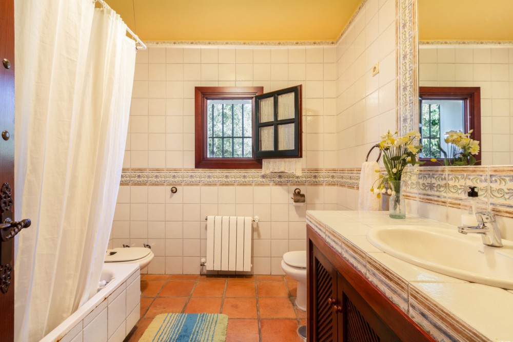 - Rustic style villa distributed over three floors, located in a quiet area of Elviria. The property has four bedrooms, two bathrooms and a toilet, a fully fitted kitchen and a spacious living room. It is characterized by its high ceilings, its Andalusian style and the large basement with an area of 200 m2. It also has a garage with capacity for three cars.