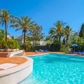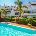 - BEACHSIDE • WALKING DISTANCE TO MARBELLA CENTRE & ALL AMENITIES • Cheerful corner ground floor two bedroom apartment just steps from the beach. Located in a very desirable complex with lush mature gardens and swimming pool, right on the promenade, just a stone's throw away from all the restaurants and amenities of Marbella centre and Marbella's Golden Mile. The apartment consists of an entrance way, ample living/dining room, master bedroom with bathroom en suite, guest bedroom with balcony, bathroom, a functional fully fitted kitchen and utility room. The living room and master bedroom lead onto a quaint terrace, perfect for breakfast or al fresco dining. It has a private garden and direct access to the community swimming pool. A wonderful apartment for beachside living. Secure outdoor parking.