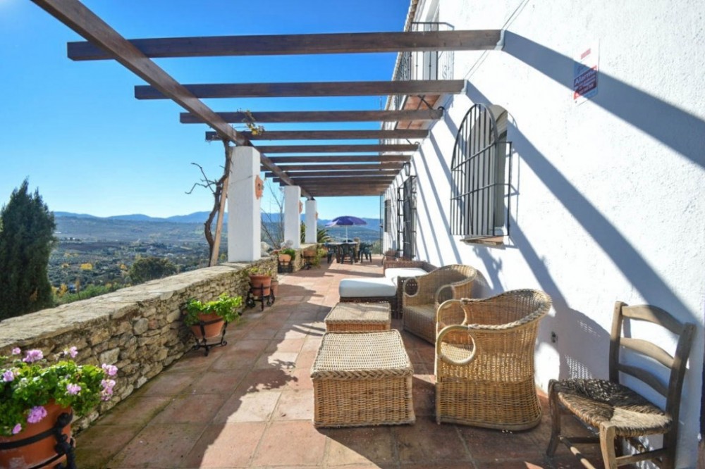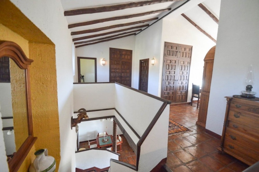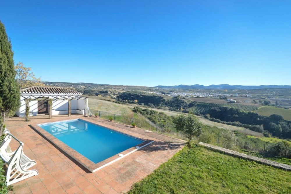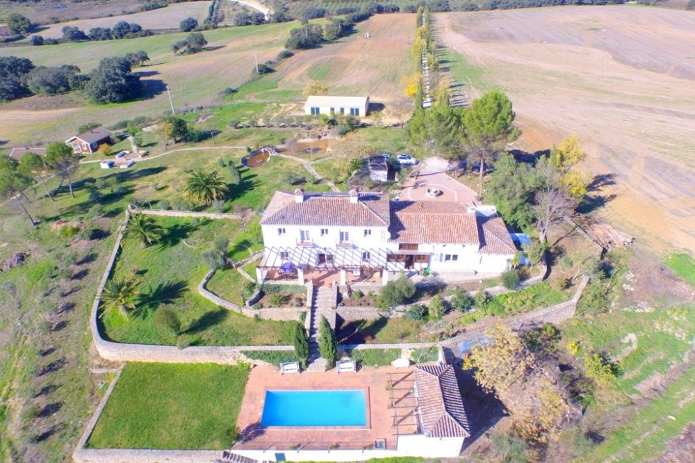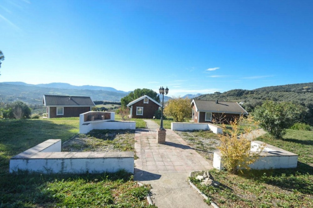 - Opportunity! Andalusian Cortijo with wonderful panoramic views, 5.000 olives trees, excellent road access, 3 separate Bungalows and 10 stables, on an impressive flat and fully fenced plot of almost 200,000m2 with well water. The main house is spread over 2 floors as follows: Ground floor: Large dining area with seating area with access the porch. Large living room with fireplace and several areas to sit, toilet, fully fitted kitchen with pantry, engine room. A double bedroom with fitted wardrobes and en suite. Service apartment located on the other side with living room, equipped kitchen, 3 bedrooms and 2 bathrooms. Upstairs: 2 large bedrooms with en suite plus office and ample storage. Beautiful sunny porch with great views and access to the pool with 100% privacy with the gym with sauna (which can be converted into a barbecue house). Solid property with huge potential, terracotta floors, wooden beams, double glazed windows, air conditioners and solar panels. Three Bungalows in perfect condition with kitchen, bathroom, 2 bedrooms (one with 1 bedroom), living room, porch with panoramic views. Stables with 10 boxes and 3 warehouses. Plot 194.607m2 with own well water and irrigation system.Total built size 992,01m2, plus pool 40m2. Living area 668,03m2. Porches and patio 115,68m2. Gym, sauna, stables, warehouses, machine room and shed 208,03m2. IBI 2.079,81€ per year. Distances: Ronda 10 km. Puerto Banus, Marbella 60km. Malaga airport 114km.