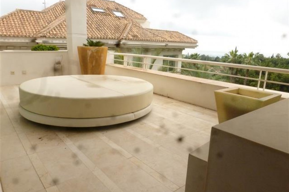 - Southwest facing, luxury duplex 3 bedroom en-suite apartment in Nagueles with spectacular views to the Mediterranean , Gibraltar and Africa. The apartment is situated in a tranquil location, within a luxury complex of only 16 apartments;3 minutes from the popular beaches of Marbella’s Golden Mile and 5 minutes from the renowned Puerto Banus. This duplex penthouse apartment offers luxury finishes, high ceilings, hardwood floors, contemporary kitchen with eat-in corner and interior designed furniture, as well as being sold with two underground garage space and storage room included in the price. The community features a large swimming pool ideal for doing laps and a children’s pool area.