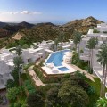 - 2 bed, 2 bath apartments from 799.000 euros (only 2 units left) 3 bed, 2 bath apartments SOLD! 3 bed, 2 bath duplex penthouses from 1.800.000 euros Prices excl. 10% VAT These contemporary apartments, penthouses and villas in 4 phases are nestling in the hills just behind Marbella, in the municipality of Ojén. The area is tranquil and surrounded by green belt and mountains with south facing impressive panoramic views down towards Marbella and the sea. They are only 5 minutes away from La Cañada, the well know commercial Centre in Marbella. The apartments are being built of the highest quality with state of the art modern architectural design and large interior spaces, lots of natural light blending with the natural surroundings and high specification fixtures and fittings. The development will include a health club with spa, gym, fitness studio and indoor pool as well as a business centre with wifi. The complex will house 2 outdoor pools (including one heated), 2 kids pools, strategically placed to enjoy the fantastic views, other services are 24 hour security, concierge service and onsite rental management. This apartment is large with total constructed area of 15,94 m2, of this 110,31 m2 interior space and 44,63 m2 of terrace. The property will comprise a spacious, light open plan living room / dining area with a beautiful kitchen including top end domestic appliances, leading out onto the south facing terrace with spectacular views of the sea and Marbella, 2 bedrooms with fitted wardrobes and 2 bathrooms. The property includes 1 parking space and a storage room. Benefit from special discounts on some units for pre-launch prices, these properties will be snapped up quickly! This luxury development in keeping with nature and surrounded by the mountainside is close to the village of Ojén, for a real Spanish flavour, a short drive to Juanar, a nature reserve with wonderful walks through pine forests and hiking trails leading up to the "Concha" mountain peak with spectacular views overlooking the Mediterranean coast, Marbella, Gibraltar and the coast of Africa. For the best of both worlds, it is only a short drive down to La Cañada, a well known shopping centre behind Marbella with all the shops you can imagine and Marbella town centre with it's amenities, shops, restaurants and bars and the beach. Málaga airport is around 40 minutes by car