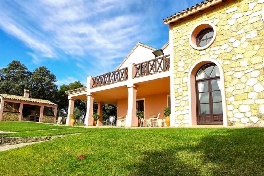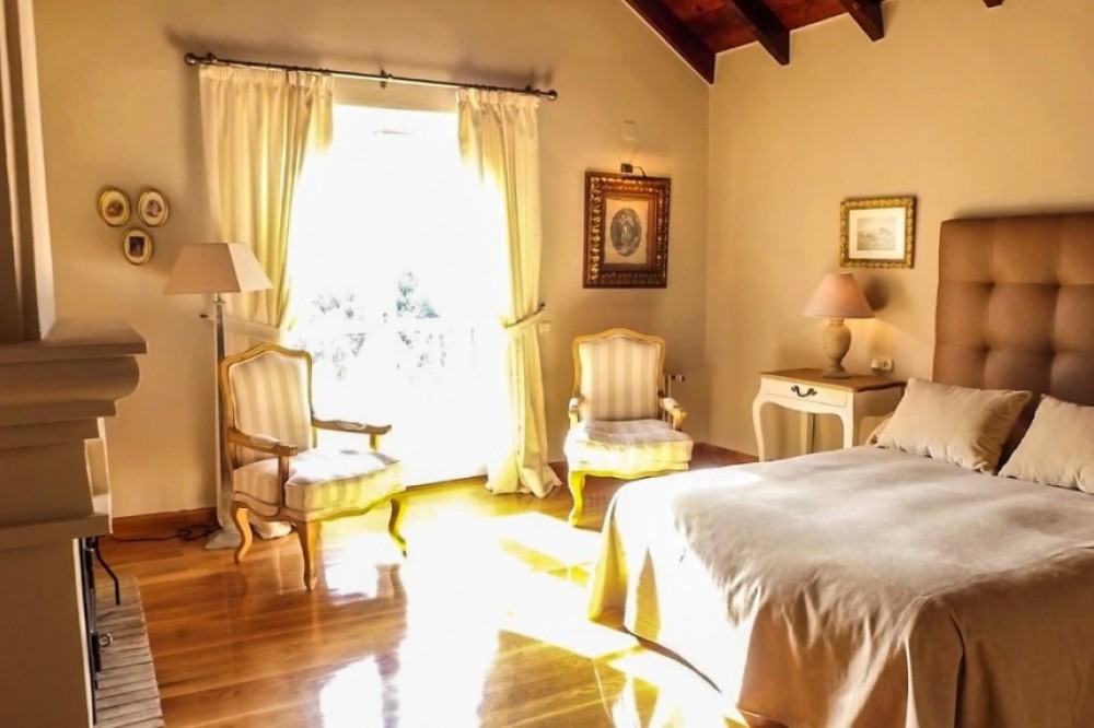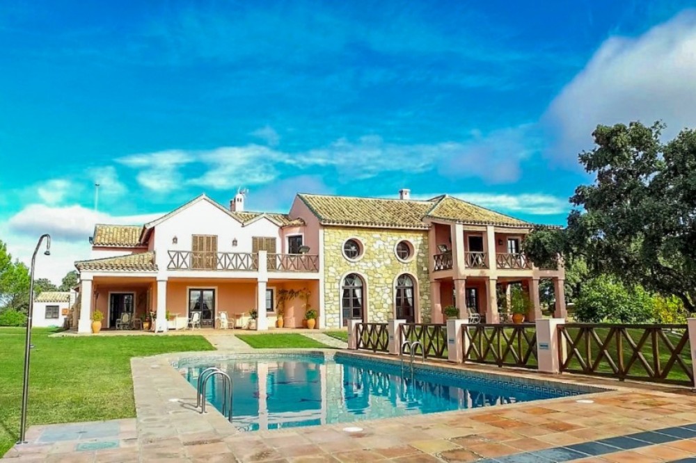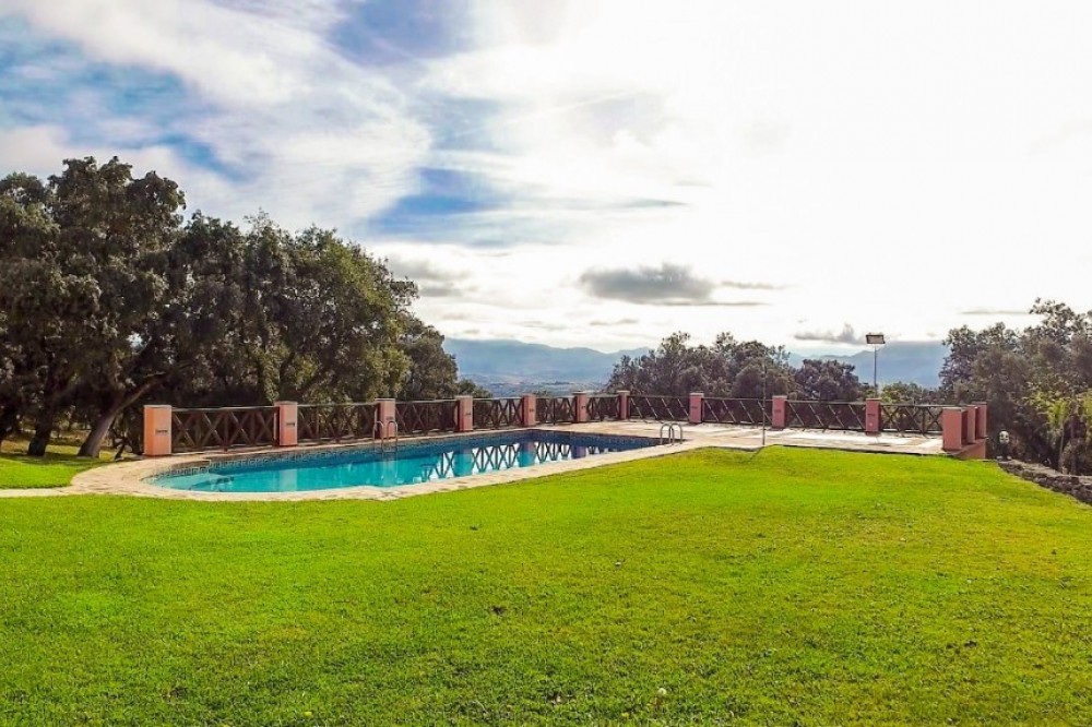 - Spectacular, fully reformed and highly appointed Finca atop the Serrania de Ronda. The expansive land is well defined with areas of crop production as well as a large, multi-use, agricultural building and an animal breeding/ rearing area. The property also benefits from ten hectares of vineyards and two independent guest houses.. The Finca is distributed as follows: Main house: Ground floor: Entrance hall, office, large kitchen with fireplace and wood oven, two living rooms, both with fireplaces, large dining area and one bathroom. There are two interior courtyards. First floor: Four large bedrooms with fitted wardrobes and fireplaces, three full bathrooms, of which two are ensuite. Exterior: Large garden area with pool, porches, barbecue area, covered garage and parking area. There is also a tennis court. 1st Guest House: Entrance hall, living room, fitted kitchen, three bedrooms and one bathroom. Garage and basement. 2nd Guest House: Entrance hall, living room, fitted kitchen and three bedrooms and one bathroom. The land at the Finca consists of ten hectares of vineyards, productive areas for the cultivation of crops and 1,000m2 for the breeding and rearing of livestock. The Finca benefits from numerous wells, delivering mineral water from the Serrania. There are associated water deposits throughout the Finca for the storage and provision of water to livestock/ crops etc. There is a large agricultural building as well as numerous animal pens for the containment of livestock. The main house is in excellent condition with hot water by thermodynamic solar panels, heating by independent radiators, the heating of which is provided by a solid fuel and oil fired boiler. The dwelling also benefits from climalit double glazed windows throughout. Plot: 3.370.000m2 (Crops 970.000m2) Built: 735.80 more Porch: 171m2. Garage: 62m2. Corrales 5.700m2. Agricultural Ship: 1.083m2. IBI: 2.187,67€ per year. Built year: 1980. Distances: Amenities: 8,3km. Ronda center: 13,6km. Malaga Airport: 103km. Gibraltar Airport: 125km.