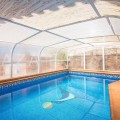 • Great house with 4 bedrooms and 3 bathrooms, located in the quiet urbanization of La Noria with a communal pool and a tennis court, 5 minutes drive from the center of Nerja, and views to the sea. The house is built with high quality materials and distributed over three floors. On the entrance level you will find the living room, a small lounge, a separate kitchen and a large covered terrace with outdoor kitchen. Upstairs there are 2 bedrooms and 2 bathrooms and a balcony with sea views. On the lower level there is a large garage and a separate apartment with one bedroom, one bathroom and a living room with an open fireplace. The private covered pool is accessed from the big terrace outside the living room.