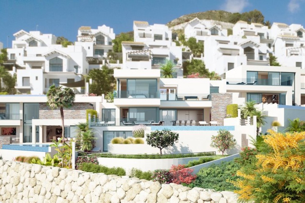 - New villa development located near the exclusive and much sought after area of Benalmádena Pueblo. The project consist of 22 design luxury villas, of which 19 (first and second phase) are already completed and sold. The construction of the third and final phase started November 2017. Gated community with a remotely operated security gate. The security gate at the entrance to the private street adds to the comfort level of residents who want to leave their homes for extended periods. The idyllic village of Benalmádena Pueblo is located less than 15 minutes drive from Málaga airport, on the hillside with fine views over the Mediterranean. Benalmádena Pueblo is full of life, and it is easy to understand why so many people choose to stay here after having strolled around the many streets and tried out the many restaurants. Foreign residents and tourists can enjoy what the village has to offer the whole year round. Go to the Casino Torrequebrada, enjoy life in the Puerto Marina and relax on one of the best beaches in the south of Spain - or play 18 holes on one of the area's many golf courses.