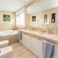 - Spacious beachside villa in popular San Pedro, a short drive west of Marbella and Puerto Banús, and within walking distance of the beach promenade, shops and restaurants. This house is set in manicured gardens with a swimming pool, offering a perfect combination of indoor and outdoor spaces, including a fantastic 120m2 roof terrace with panoramic views. On the entrance level, we find an entrance hall, a living room with fireplace, a dining room connected to a large fully equipped kitchen with breakfast area, a laundry/utility room, a guest toilet and an en-suite guest bedroom. Additionally, there is a large covered terrace overlooking the pool. On the upper floor, there are two guest suites with terraces, and the master suite with a sunny open terrace and access to the roof terrace. The naturally lit basement offers a games room, two additional bedrooms (for beds), a family bathroom and a large garage that can accommodate 3-4 cars. There are also storage areas and engine rooms. This villa offers a spacious and comfortable environment, with a well thought out layout that makes the most of the different areas of the house. The location close to the beach and the amenities of San Pedro, as well as the ease of access to Marbella and Puerto Banús, make it an ideal option for those looking to enjoy a relaxed lifestyle on the Costa del Sol.