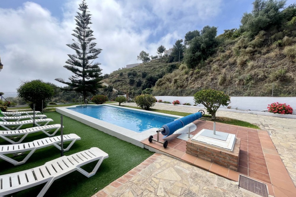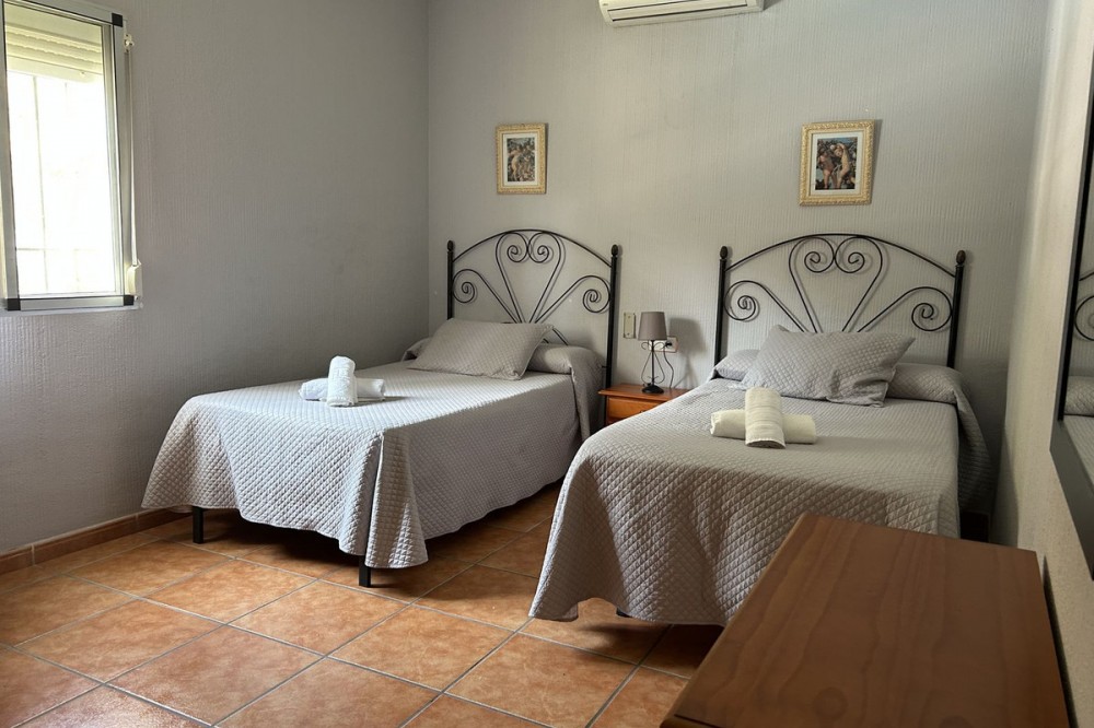 - This spacious four-bedroom, two-bathroom villa with a separate upper-floor apartment, set in the countryside with a large private swimming pool and gardens surrounded by fruit trees. The property includes a main living area with a fireplace, a fully fitted kitchen, a dining area, and a covered terrace on the ground floor, while the independent upper floor offers a lounge, bedroom, bathroom, and large sunny terrace. Access is via a gated, long driveway, and there is also a BBQ area, a storage outhouse, and a potential annual income of €70,000 from the fruit harvest. Property features Bedrooms: 4 (3 on the ground floor, 1 on the upper floor) Bathrooms: 2 (1 on the ground floor, 1 on the upper floor) Kitchen: Fully fitted kitchen on the ground (open kitchen on the upper floor) Living areas: Lounge with fireplace on the ground floor, separate lounge area on the upper floor Outdoor space: Large private swimming pool Gardens with numerous fruit trees and plants Covered terrace on the ground floor Huge terrace on the upper floor with uninterrupted sun BBQ area Additional features: Independent upper floor with its own entrance Electric fence at the entrance of the long driveway Ample parking area Separate outhouse for storage with dining area and mini kitchen and bathroom Income potential: Expected annual income of €70,000 from the fruit harvest as well as rental for either the villa or apartment. Also great for family life or as an investment.