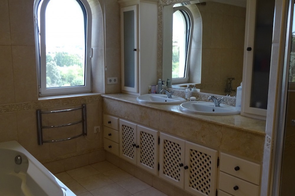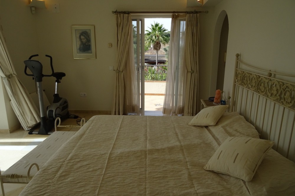 - Attractive and charming 4-bedroom Spanish-style villa, designed and built for the current owner/occupier to Northern European standards Plot size 3,090 m2. House built 385m2 Building completed in October 2002 Property details: 4 bedrooms, large living room. 4 bathrooms. 1 Dressing room attached to the master bedroom. Large storage room of approximately 12 m2. Terrace of approximately 30 m2, with access from the living room and hall and is closed with glass curtains. Attached double garage with a 30m2 long drive to the front door. Additional parking space next to the garage and NO street parking is necessary. Pool of 12 x 5 m and depth 120 x 210 cm. The villa has 2 gas boilers for underfloor heating, hot water and the kitchen is both gas and electric. All bathrooms have independent underfloor heating, electric heating. All exterior walls and roof of the villa are insulated and double glazed. All the main parts of the villa and the large, well-kept garden are oriented to the south and the pool is exposed to the sun all day. The patio of approximately 140 m2 is surrounded by 50% by the villa, 25% by plants/trees and 25% by the pool. The current quarterly community charge is €479.74 Annual IBI, €2,259.89 Detached Villa, Sotogrande Alto, Costa del Sol. 4 Bedrooms, 4 Bathrooms, Built 255 m², Terrace 130 m², Garden/Plot 3090 m². Setting : Commercial Area, Close To Port, Close To Sea, Close To Town, Close To Schools, Close To Forest, Urbanisation. Orientation : South. Condition : Excellent. Pool : Private. Climate Control : Fireplace. Views : Mountain, Country, Panoramic, Pool. Features : Covered Terrace, Fitted Wardrobes, Private Terrace, Gym, Storage Room, Utility Room, Barbeque, Double Glazing. Kitchen : Fully Fitted. Security : Alarm System. Parking : Garage. Utilities : Electricity, Drinkable Water. Category : Golf, Luxury.