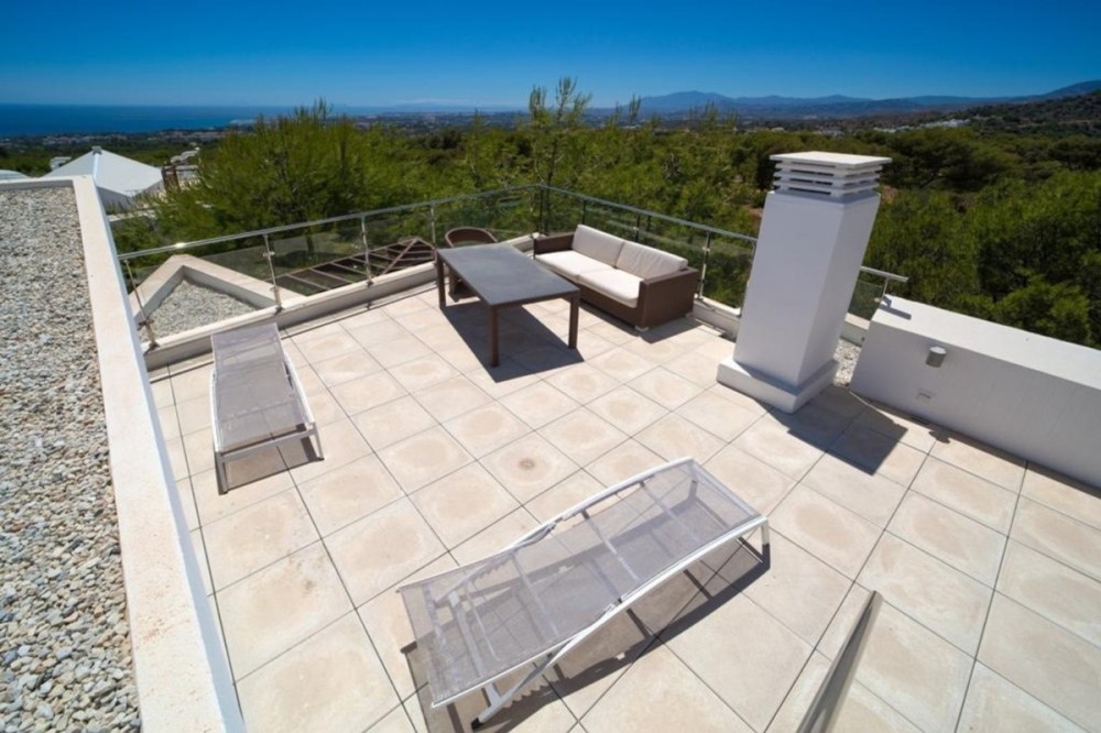 - A beautiful semi detached house located in most luxury spot of Marbella - Sierra Blanca. The complex was built in year 2012 by Italian project, complying with the highest quality standards. Community consists of enormous, well kept gardens, two open swimming pools (one is for children), three SPAs and a GYM. It is fully gated and with 24h security vigilance. Next to the community - famous hiking trails to Marbella "La Concha" mountain and a beautiful mountain forest. The entire urbanization is open to the stunning views to Marbella city, Mediterranean sea, Gibraltar and Morocco mountain range. The property consists of 5 bedrooms and 5 bathrooms in suite (all bathrooms has bath with hidromassage and separate shower), on WC for guests, huge living room In a same space with kitchen, 3 terraces (one rooftop), private infinty pool, garden, elevator, garage for three cars. The space is divided by two floors. Property is equipped with "smart house" system, which can be controlled from Ipad. Very efficient air conditioning and heating systems (heated floor). All the furniture and amenities are contemporary, high quality and design. Luxury house for rent in Sierra Blanca - Marbella - Costa del Sol