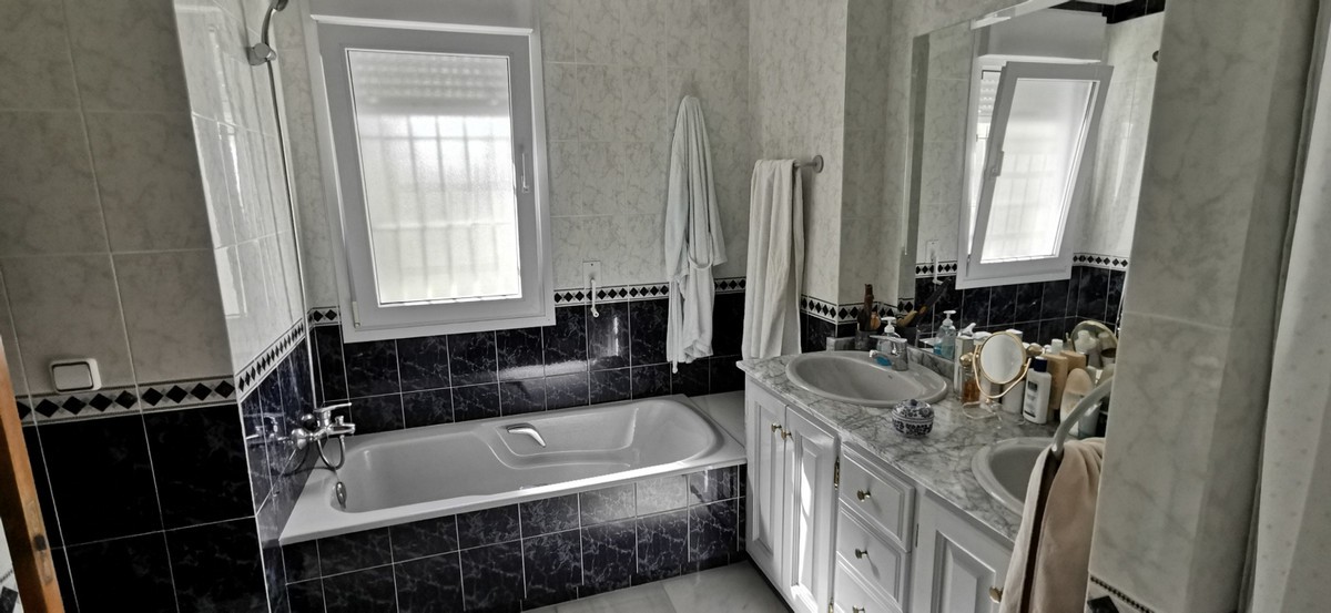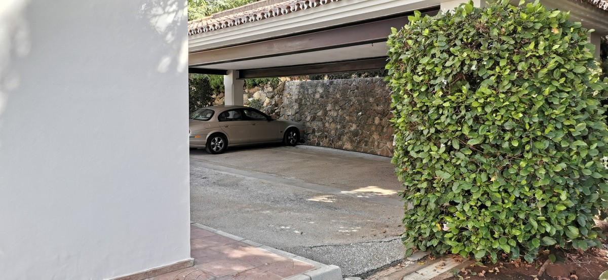 - Beautiful and elegant villa in an idyllic and quiet location close to laguna beach and Estepona. Nearby you will find restaurants and supermarkets. The property has a large landscaped garden with pool, palm trees and carport for 4 cars as well as a parking zone for more than 10 cars. This two storey house is in a perfect condition with 5 bedrooms and 5 bathrooms. The living room with fireplace and direct access to the garden and pool area is a central point of the villa. A fabulous gallery adorns the lounge and gives this living room a 6-meter high ceiling. The fully equipped kitchen gives access to an additional dining room. In the entrance area there is also a classic office, which can easily be converted into another bedroom. From the property you have a breathtaking panoramic sea view and mountain view.