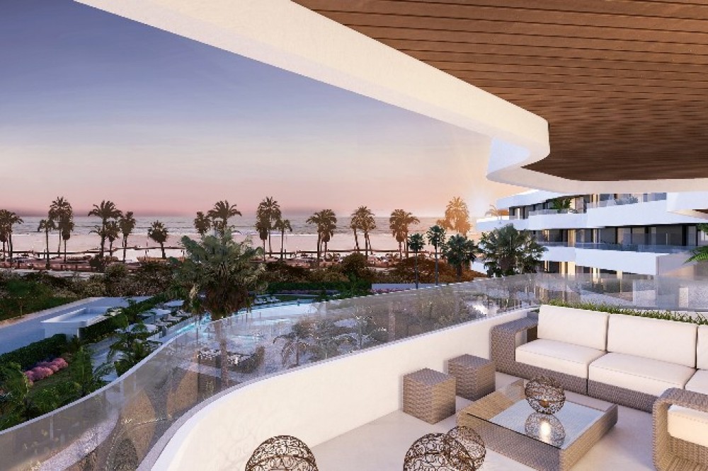 - FIRST LINE BEACH - BEACHFRONT NEW DEVELOPMENT - Ready end 2024! 1 bed, 1 bath apartments from 550.000 euros 2 bed, 2 bath apartments from 884.500 euros 3 bed, 2 bath apartments from 1.067.000 euros 2 bed, 2 bath penthouses from 1.200.000 euros Prices exclude 10% VAT and include 2 garage spaces and utility room An exclusive developement of only 20 apartments! A building with an innovative architectural design that turns towards the sea to achieve the greatest angle of view of the horizon, ensuring that all the homes enjoy panoramic views of the sea and an unobstructed perspective on the spectacular common areas. A unique environment designed to achieve the greatest privacy and exclusivity, an elegant environment with beautiful gardens that reflect the best of the flora and the Mediterranean essence through its vegetation surrounded by an extensive green meadow that melts into the horizon of the Alboran where we will enjoy swimming pool, healthy circuit, rest areas and infinite charming corners where you can enjoy the magic of being on the seashore. It is a promotion of 61 exclusive homes of 1, 2, 3 and 4 in a closed residential, with a unique and elegant access arranged to guarantee the privacy and security of its residents. The innovative architectural design makes it possible to take advantage of the orientation of the homes and generate spacious and bright interior spaces. Large windows that let in light and living rooms that blend into the large terraces to achieve a clear visual effect and with the greatest visibility of the sea from inside each of the homes. The dream of living in front of the sea