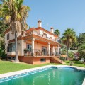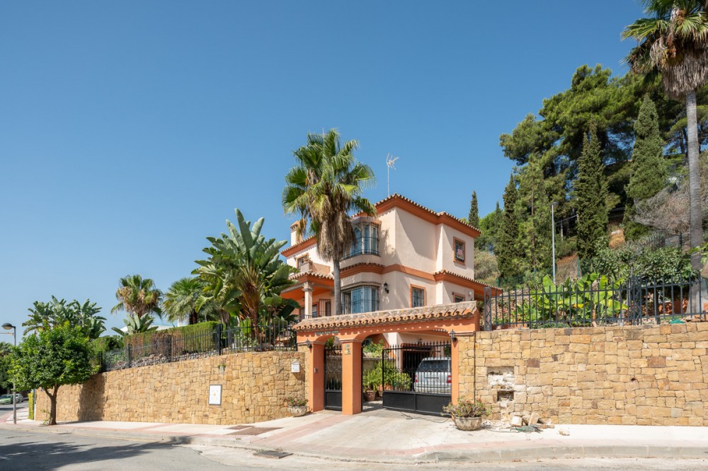 - Large, attractive family home in very quiet area close to Marbella and next to a Natural Park. Beautiful open south and south-west views. Large, fully equipped kitchen with fireplace and sea views. Ample living/dining room leading out onto terrace and pool. Large basement.