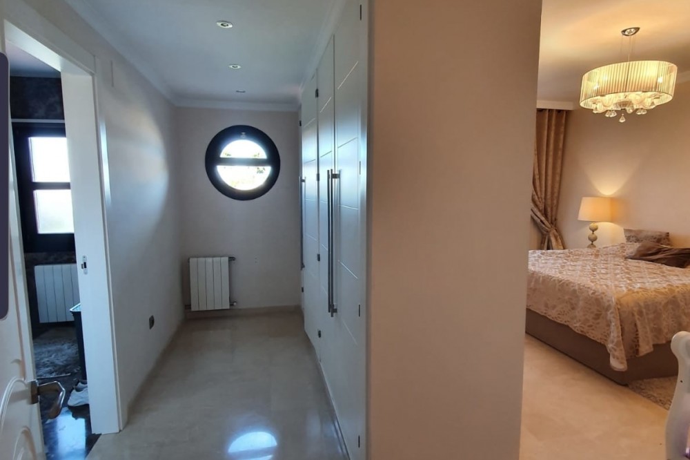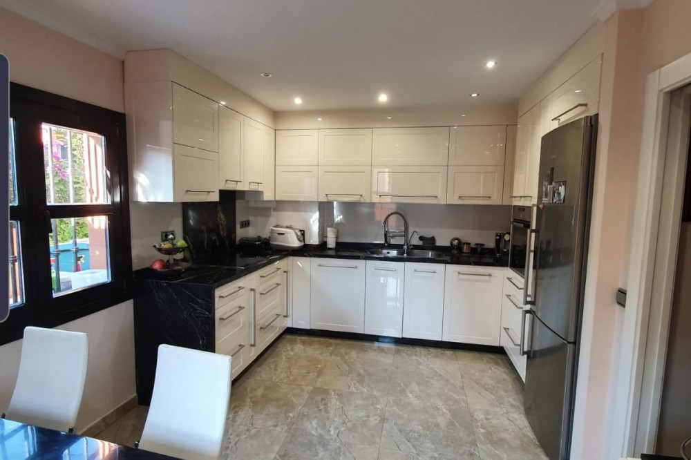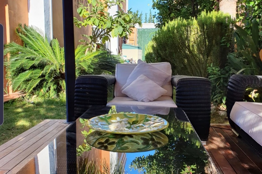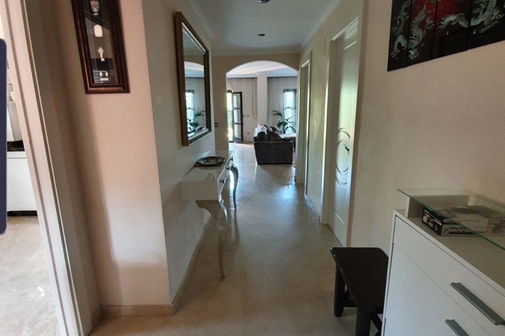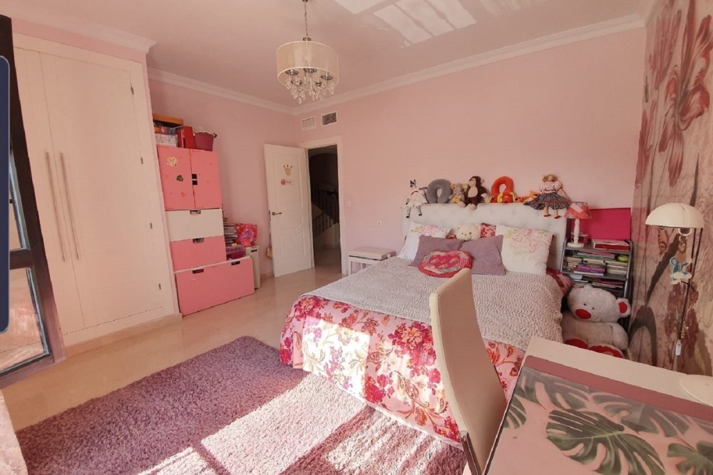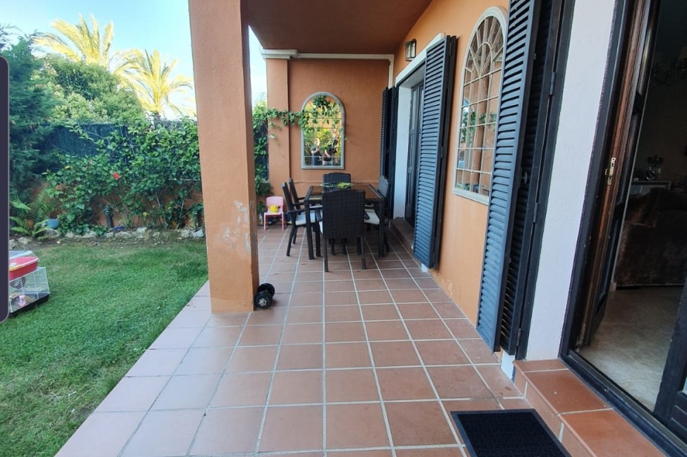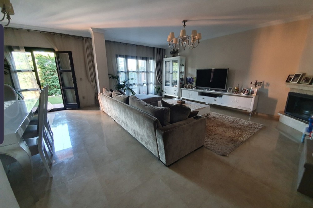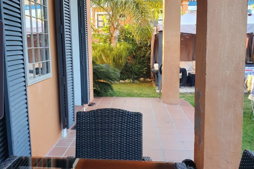 - Bright and spacious corner townhouse with a large garden of 250m. Located in a sought-after area, near the Golf Club and the shopping center and 7 minutes from the beach. The community has concierge services and 24-hour security, with several swimming pools and large green areas with a playground. The house is divided into 2 floors: On the ground floor there is a spacious living room, 1 bedroom and 1 bathroom with a shower. First Floor: - Comfortable staircase to access the 3 bedrooms on the upper floor, with terraces / balconies, all with plenty of natural light; Spacious master bedroom with full bath with en-suite bathtub and walk-in closet; Two other generously sized bedrooms sharing the third full bath. The house has a chill out and barbecue area - perfect for enjoying holidays on the Costa del Sol.