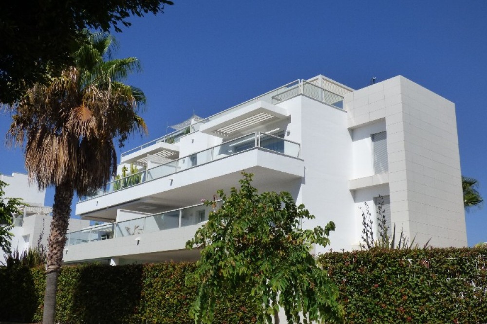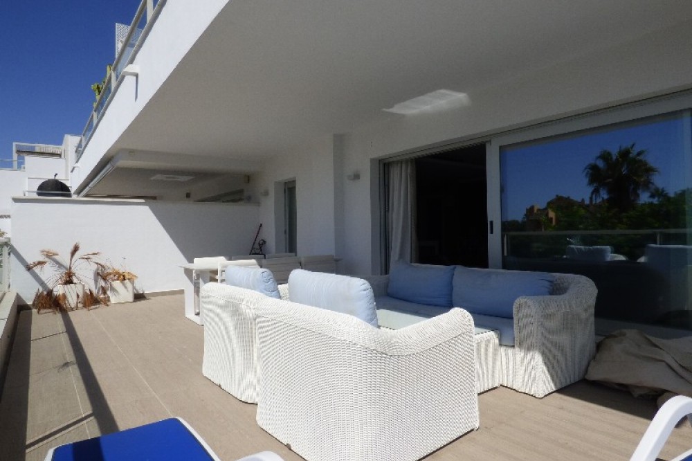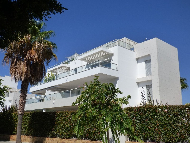 - Apartment for sale in Jade Beach, San Pedro de Alcantara. This south facing, first floor apartment is located less then 400 meters from San Pedro beach and its promenade leading to Puerto Banus and Marbella. An excellent location, only 5 minutes'' drive to Puerto Banus and less than 10 minutes to the centre of Marbella. It is a rare opportunity to find a property within walking distance to all kind of facilities, as the beach, international schools, San Pedro town centre with nice Spanish restaurants, shops, boutiques and of course the new Boulevard that offers amusements throughout the year. The apartment has been built to a high standard using quality materials and modern design. It comprises of 3 spacious double bedrooms and 2 bathrooms (one en-suite). The open plan kitchen and living area leads directly to an extensive terrace with a dining area and plenty of room for a sofa area and separate sunbathing area. The kitchen is fully fitted with breakfast bar and separate laundry room. Features are under floor heating in bathrooms, air conditioning, underground parking space, storage room and communal swimming pool.Possibility of enclosing the terrace with glass curtains gaining extra living area for the winter, but still have an open terrace in the summer or whenever one wishes..2 underground parking spaces plus 1 big storeroom included in the price. Furniture not included!!