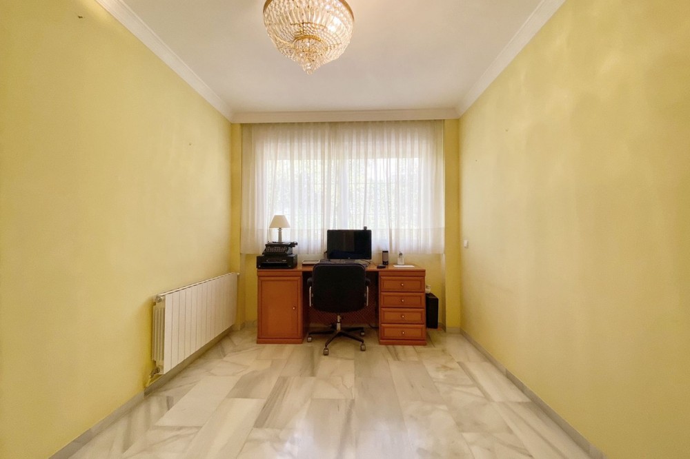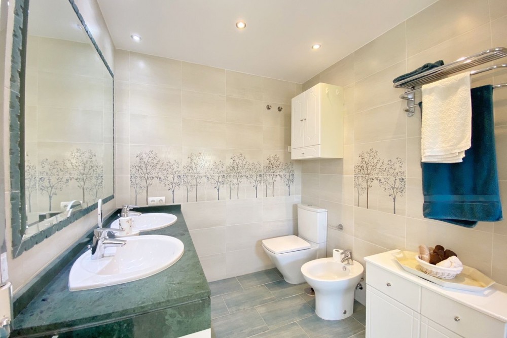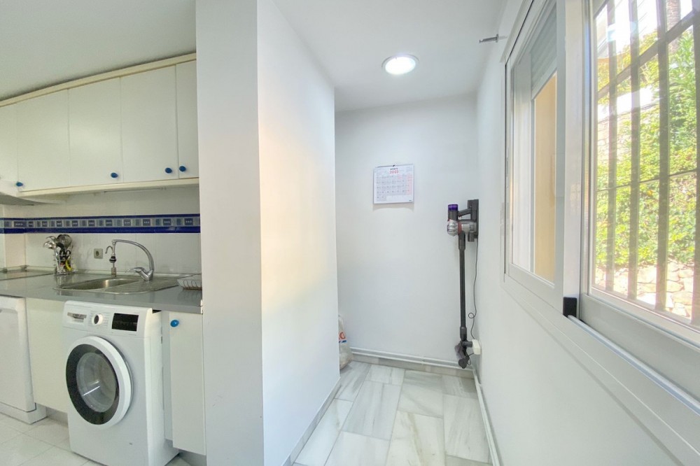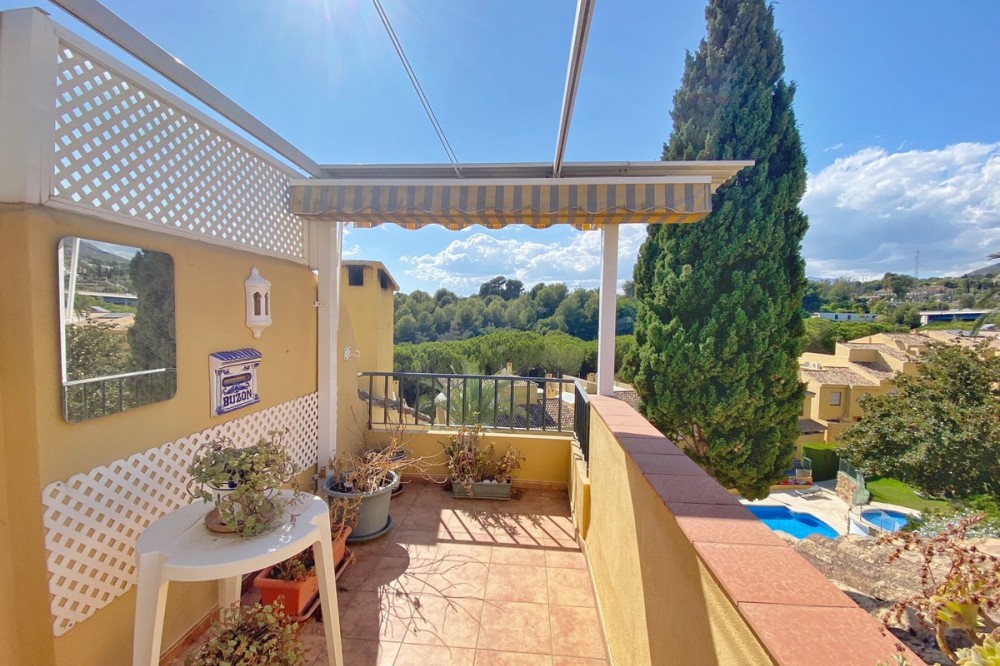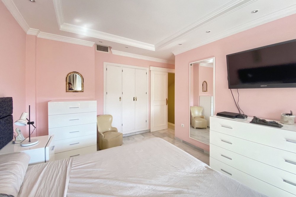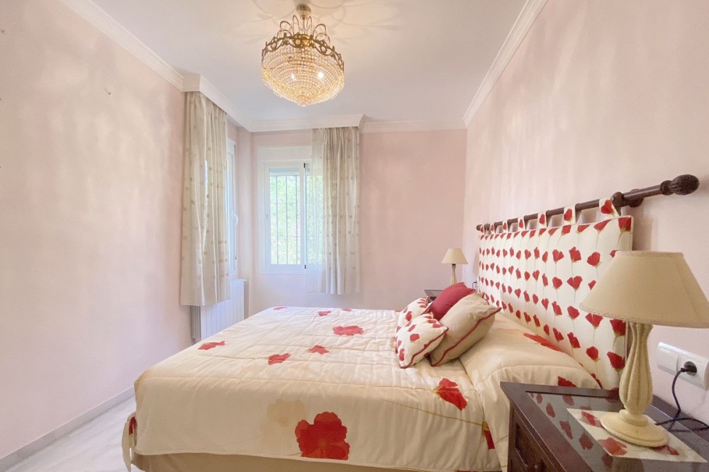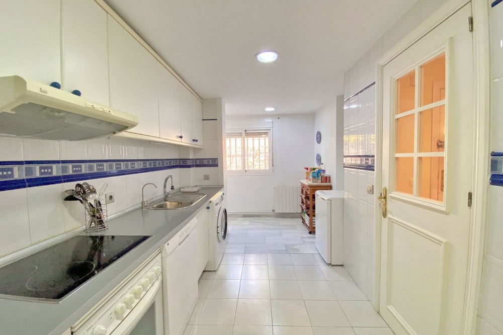 - Charming southwest facing townhouse for sale in Marbella with sea and mountain views. A gated community called Guadalpark II consisting of 36 houses with communal pool and gardens .In a quiet and well connected complex with daily concierge/gardener and within walking distance to The Old Town and amenities like schools, sports centre and supermarkets. It comprises of a spacious living/dining room with fireplace and direct access to a lovely Southwest facing terrace. The ground floor also has a fully equipped kitchen and a guest toilet. On the upper floor there are 3 bedrooms and 2 bathrooms, one en-suite with access to a private terrace and a staircase that takes you up to the solarium. The house has central heating throughout and underfloor heating in both bathrooms. It includes 2 private parking spaces, one underground and a carport connected to the entrance of the house. This is a perfect family home in a complex with mainly permanent residents.