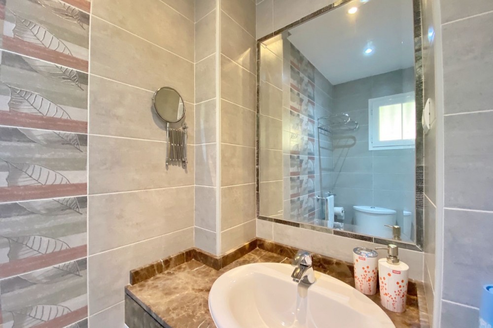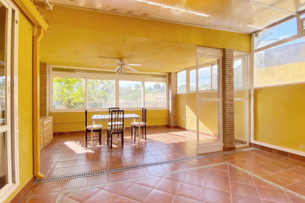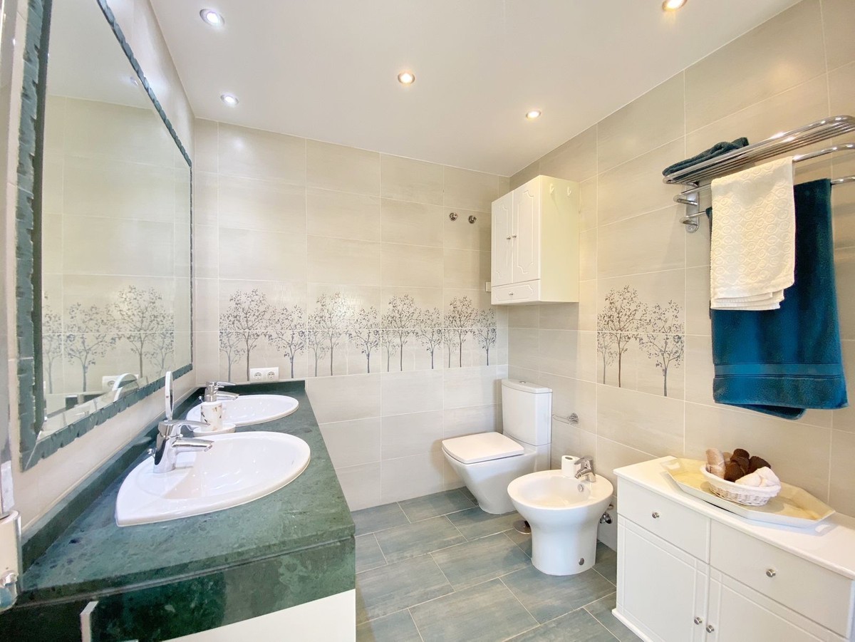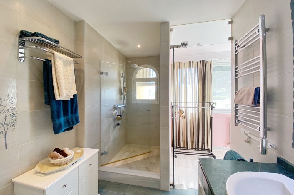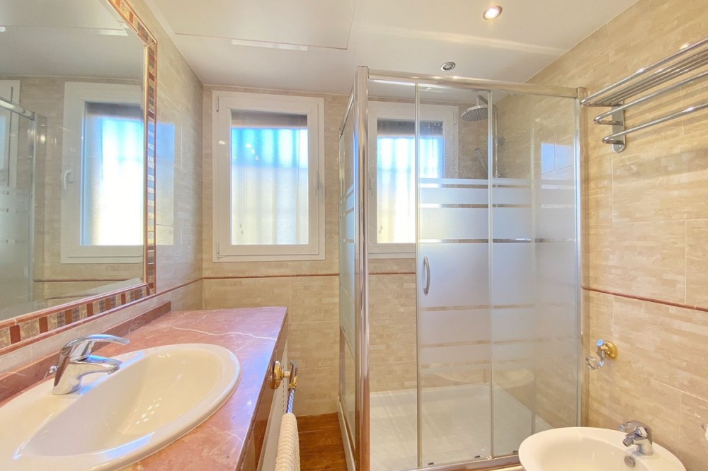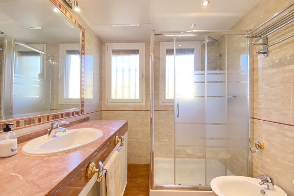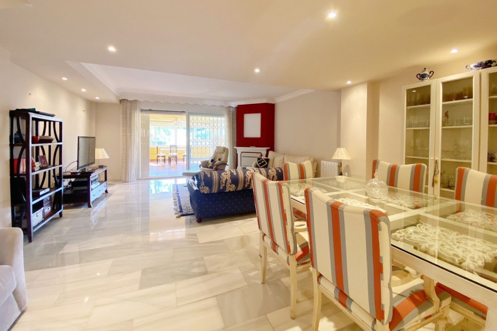 - Charming southwest facing townhouse for sale in Marbella with sea and mountain views. A gated community called Guadalpark II consisting of 36 houses with communal pool and gardens .In a quiet and well connected complex with daily concierge/gardener and within walking distance to The Old Town and amenities like schools, sports centre and supermarkets. It comprises of a spacious living/dining room with fireplace and direct access to a lovely Southwest facing terrace. The ground floor also has a fully equipped kitchen and a guest toilet. On the upper floor there are 3 bedrooms and 2 bathrooms, one en-suite with access to a private terrace and a staircase that takes you up to the solarium. The house has central heating throughout and underfloor heating in both bathrooms. It includes 2 private parking spaces, one underground and a carport connected to the entrance of the house. This is a perfect family home in a complex with mainly permanent residents.