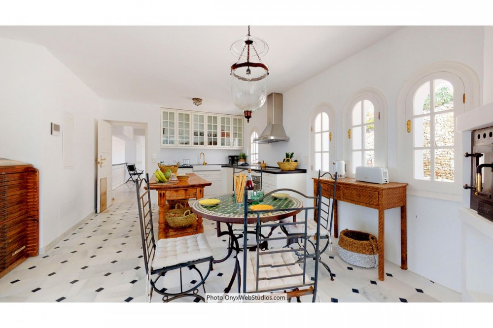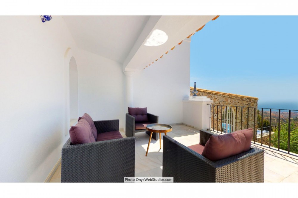 - Spectacular south-facing luxury villa with one of the best possible sea views on the Costa del Sol, in walking distance famous Mijas village and only 15 min from the airport and about 10 min drive to the beach. The Plot is 6092 sqm with mature garden. Impressive entrance driveway from street is leading to the villa. Villa at approx. 1.135 sqm with entrance hall leading to a large lounge with high ceilings and a fireplace, dining area and 3 doors out to the partly covered terrace with beautiful sea views and an infinity pool with heating. On entrance level there is a large kitchen with separate entrance. Upper floor consists of a big master bedroom with terrace, dressing-room, a further bedroom and 2 bathrooms. Beside the lounge there is further 2 bedrooms, one with bathroom en-suite, 1 more bathroom and a small room for dressing/office. From kitchen stairs to staff apartment with 2 bedrooms (one is used as lounge), hall/food storage and bathroom. Lower is a further playroom with entrance also from the garden. Annex with double garage (without gate, but can easily be installed), laundry room and a separate apartment above consisting of lounge/bedroom, a nice BBQ terrace behind, small terrace, bathroom, small kitchen and an extra sleeping arrangement. Further there are machinery room and garden storage room. Stairs in the garden is leading to a second pool with terraces around. The villa has been refurbished in 2018 - 2019. Possibility for further construction on the plot. We have a Virtual Tour of the property.