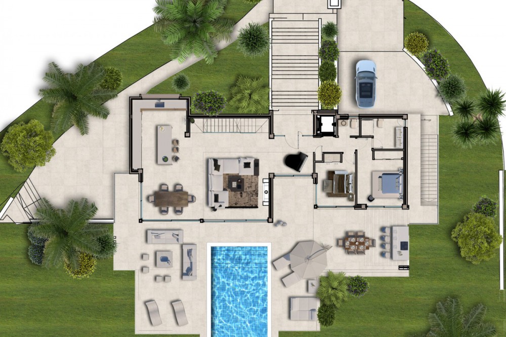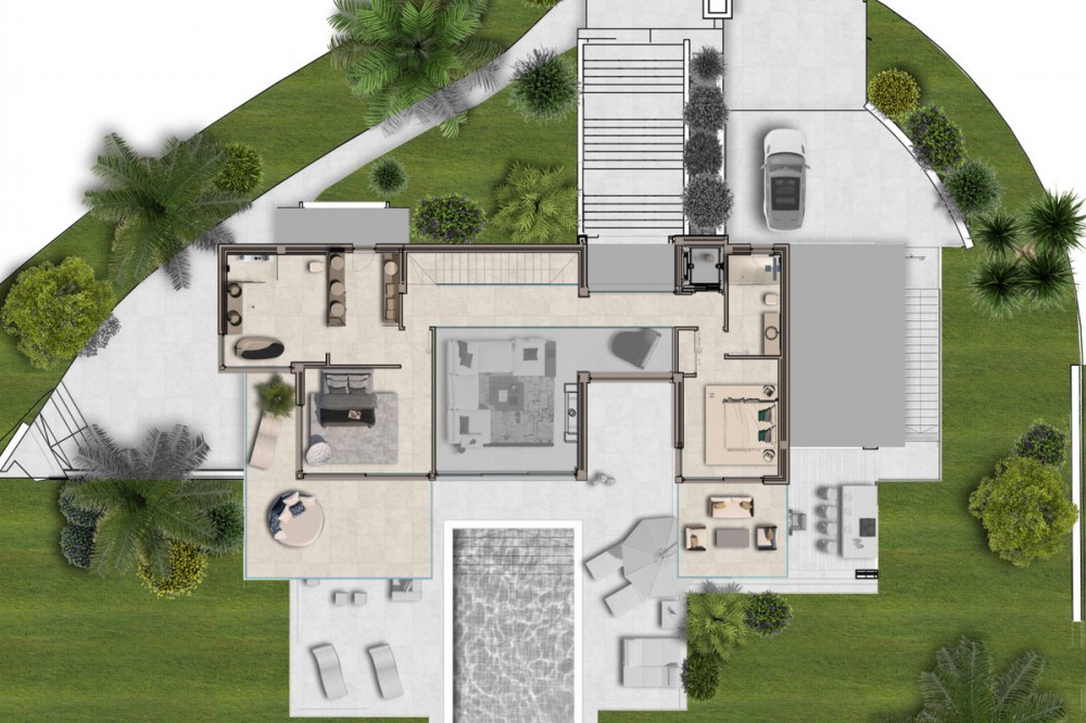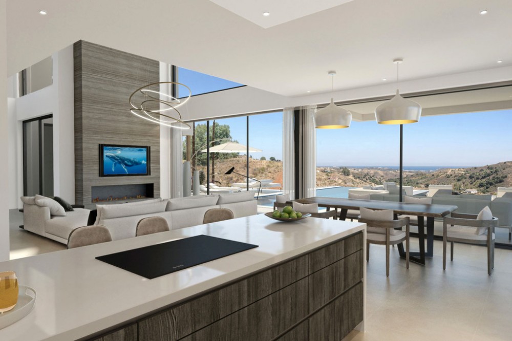 - New Development: Prices from €2,760,000 to €2,760,000. [Bedrooms: 5] [Bathrooms: 4] [Built size: 334m2]. This is an off-plan project of an ultramodern luxury villa situated in one of the most beautiful and attractive locations on the Costa del Sol La Cala Golf Resort in La Cala de Mijas. A haven of tranquillity at just 10 minutes from the beach, 20 minutes from Marbella and 30 minutes from Málaga Airport. This exquisite villa, designed by the renowned architect Ismael Merida, offers intelligent architectural solutions that will appeal to the most demanding. Every detail was carefully defined to enhance the feeling of freedom and absolute comfort. This high-quality villa is standing on a large plot of 1474m² situated on the top of the hill. Having the best possible location in this area, the villa is offering the complete privacy and unobstructed gorgeous views over the green hills of La Cala de Mijas and the Mediterranean Sea. The villa is distributed over 3 levels and has 4 bedrooms, 3 bathrooms, a spacious living room with an open-plan kitchen, a guest toilet, a garage for 2 cars and a multifunctional room that can be used as a gym, home cinema theatre or even as an individual apartment. All the levels are connected by the designer staircase. Its contemporary design goes hand in hand with the surrounding stunning landscapes, ensuring the smooth transition between the nature elements and the engaging concept in both exterior and interior parts of the villa. The south orientation guarantees the sun on the terraces and in the garden all day long.