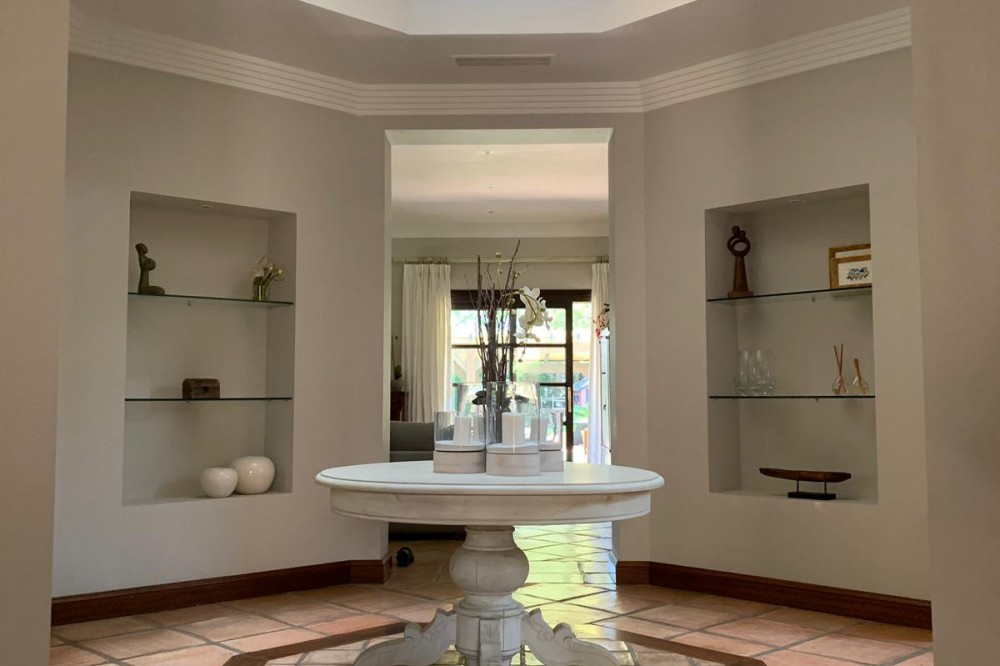 - Prestigious Villa in Marbella – Sierra Blanca An Elegant Mediterranean Villa in One of Marbella’s Most Exclusive Neighborhoods Nestled in the heart of Sierra Blanca, along the iconic Golden Mile, this sumptuous villa perfectly blends the charm of Mediterranean architecture with top-of-the-line features. Surrounded by lush greenery, it offers complete privacy while being just minutes away from Marbella’s city center, sandy beaches, international schools, renowned restaurants, and private clubs. Key Features Built area: 630 m² Terraces: 95 m² Chill Out area: 60 m² Plot size: 960 m² Orientation: South-East Views: Pool and sea views (from the master suite) Laid out across 3 levels, the villa includes: - Ground Floor A spacious entrance hall leading into a bright living room with a fireplace, opening directly onto the porch, pool, and outdoor lounge area A warm and welcoming dining room connected to a 35 m² independent kitchen, fully renovated and equipped Access to a terrace with outdoor kitchen and summer dining area One bedroom with en-suite bathroom A cozy reading or TV room Guest toilet - Upper Floor Two comfortable bedrooms sharing a bathroom A stunning 60 m² master suite featuring a fireplace, luxurious bathroom (with jacuzzi & shower), two walk-in wardrobes, and a private terrace with sea views - Basement One bedroom with private en-suite bathroom A lounge with games area and a separate office A laundry room and additional storage space *** Premium Features & Amenities *** Private swimming pool Landscaped garden Underfloor heating throughout Centralized air conditioning Solar-powered water heating Fireplace Solarium Double-glazed sliding wooden windows Reinforced entrance door, wooden shutters Garage for 2 cars included Traditional terracotta flooring Elegantly furnished An Exceptional Lifestyle in Marbella This villa is a rare opportunity to acquire a prestige property in a peaceful, secure, and natural environment, while enjoying immediate access to the most exclusive amenities the Costa del Sol has to offer. An ideal home for year-round living or a luxurious second residence.