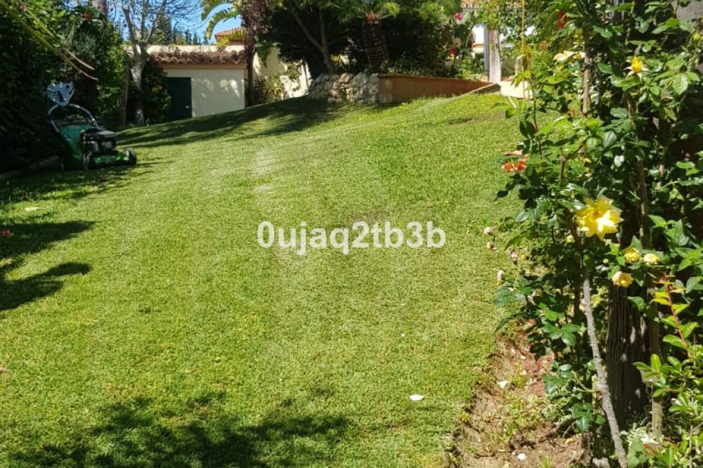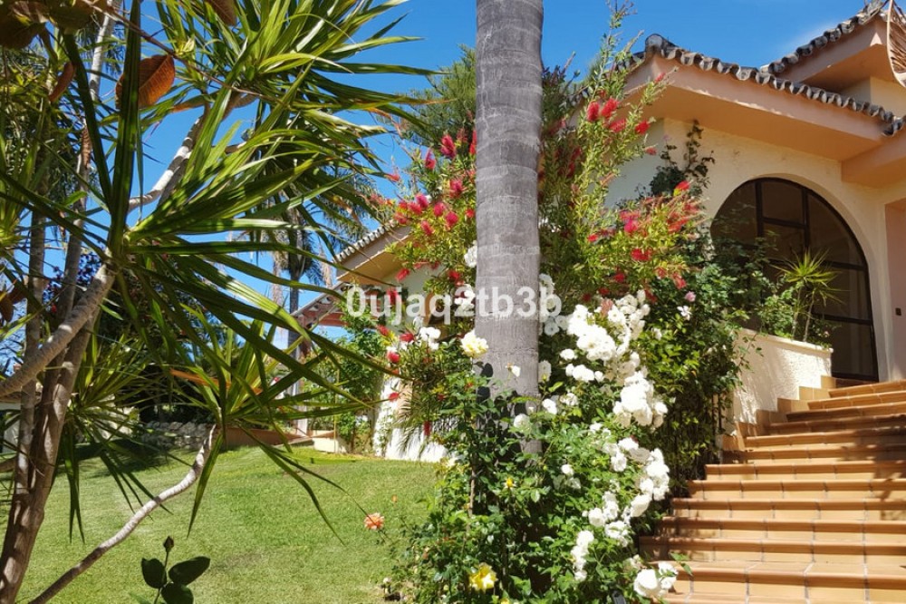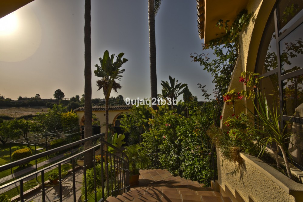 - Very nice and ample traditional villa located close to ALDI and Burguer King and the beach on the New Golden Mile. Only 5Km from Estepona center and less than one kilometer to the beach. The large plot can be divided, currently part of it is used to cultivate fruits and vegetables. The house includes a garage for one large car being able to park more vehicles inside the plot. Ample living room, with a total of five bedrooms and 4 baths. Master bedroom en-suite. Large covered terrace with views to the large pool. Separate guest/staff apartment. Well maintained.