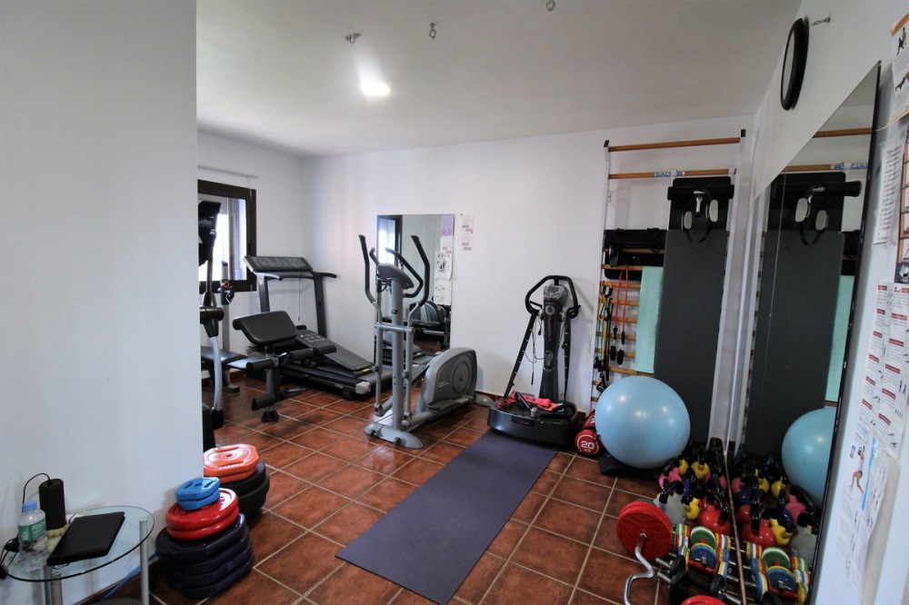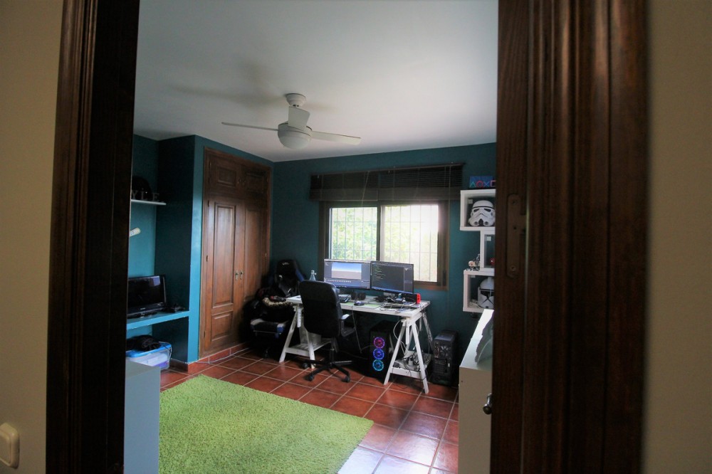 - Fantastic villa in Forest Hills with 600m built on a 1000m plot. This villa is characterized by its incredible panoramic views facing south and its large land full of fruit trees and planted with different plants and vegetables, areas with picnic areas, garden with saltwater pool and a large entrance with space for more than one car. leisure with built-in barbecues and stone ovens. The villa consists of two floors and a basement. On the upper floor we find two bedrooms, one of them with a built-in dressing room and the main room with access to a south-facing terrace. We found a bathroom with Jacuzzi and an extra dressing room. The first floor consists of 2 offices, 2 bedrooms, 3 bathrooms, 1 gym, 1 laundry room, large fully equipped kitchen with dining room and exit to the outside with dining terrace, large living room with access to another covered terrace and the garden. On the underground floor (120m) we find a large yoga and pilates room, reception and consultation or office plus 1 bathroom. (It can be renovated and create a separate apartment as it has a separate entrance) The villa has a privileged location, surrounded by vegetation, nature, waterfalls and a river. Perfect for outdoor sports and 15 minutes from the beach and Estepona. It has two independent entrances/exits and has solar panels.