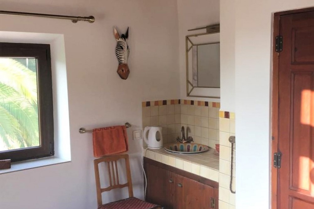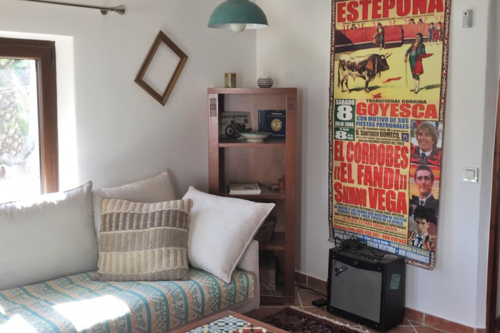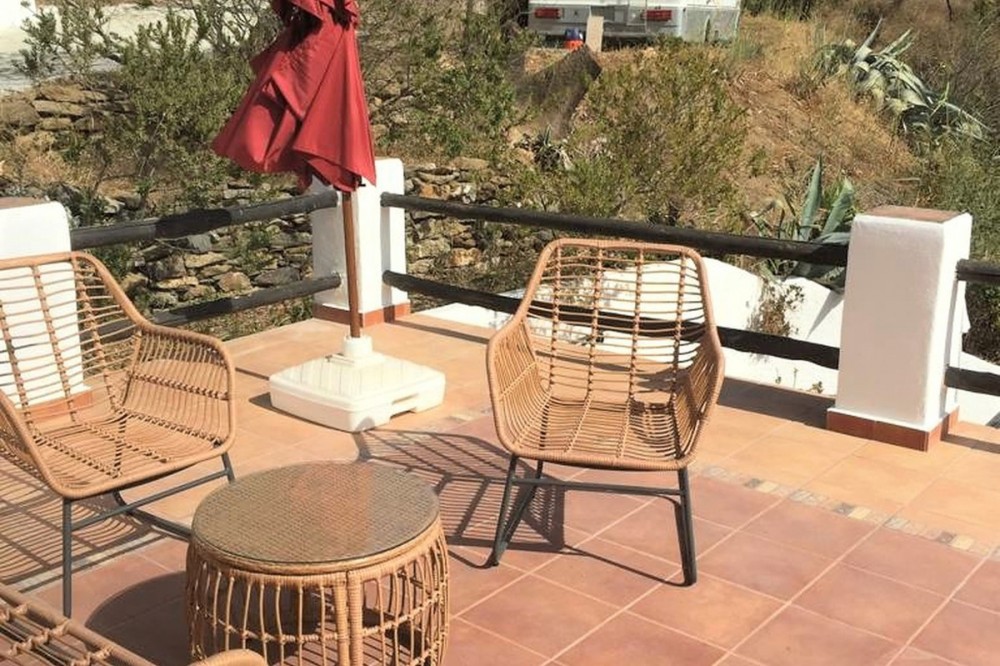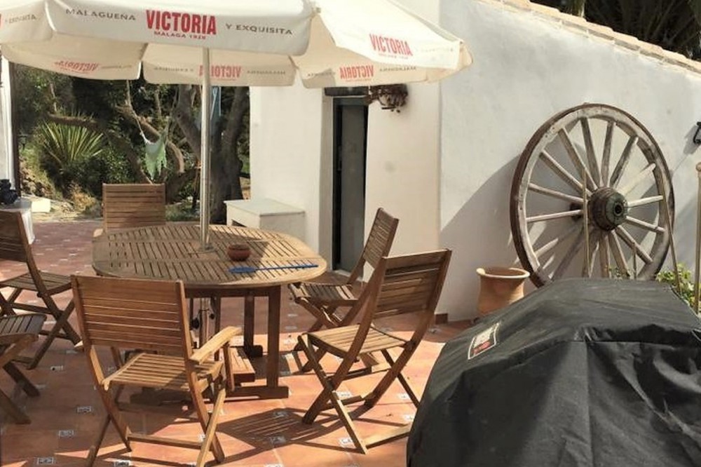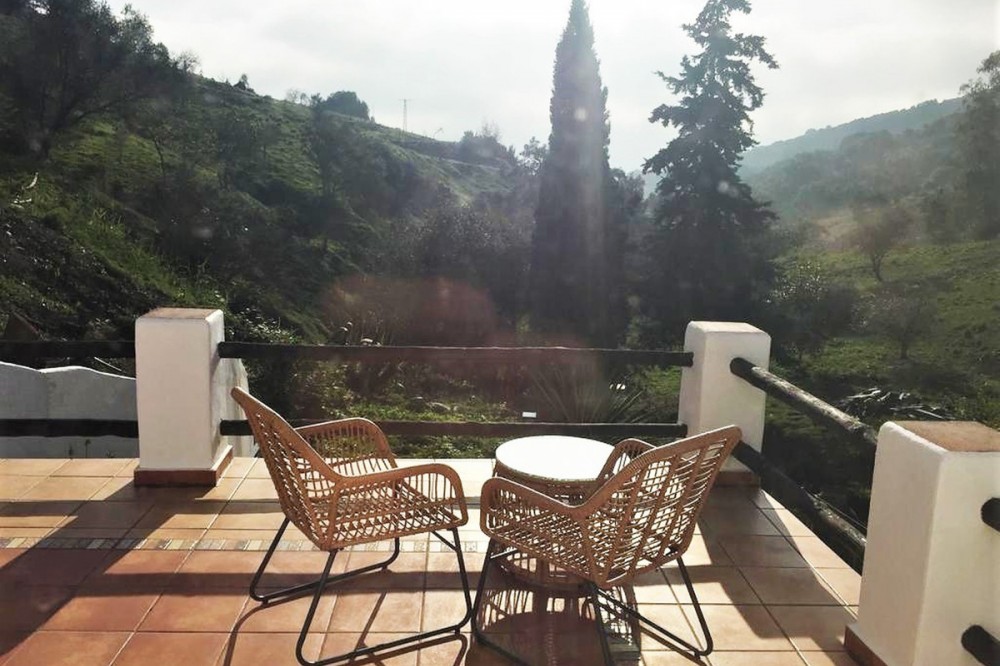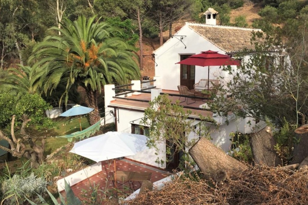 - Magnificent finca with pool in Casares, Costa del Sol, 9 km from Estepona, 1 hour drive to Malaga airport and 30 minutes drive to Gibraltar The beautiful finca with pool of 30.000 m2 is located in the nature park in Casares, 8 km from the beach and 10 km from shops. The 120 m2 house, which was completely renovated in 2020, has a total of 3 bedrooms (two of which are on the 1st floor), 2 bathrooms with shower, a large eat-in kitchen with fireplace and access to the terrace and garden, 1 large living room with fireplace, storage room. The house was completely restored to a high standard in 2020. It has new PVC windows, tiled floor, alarm system. Next to the house is a small house (casita) of 15 m2 in which two more people can sleep comfortably. The house is surrounded by terraces and a 1000m2 fenced garden with fruit trees (orange, lemon, grapefruit) and palm trees. It is possible to cover the terrace and form a unit between the casita and the main house. The house is connected to the local electricity and water supply. It is fully equipped with high quality furniture. A 2021 paved road leads to the property. There are 2 wells on the well cultivated terrace area of 30000 m2. The plot is partially fenced. 2 bridges lead over the "arroyo Jordana" stream to the partly forrest areas; here are cork oak trees, hazelnut trees, vines. There is also a small tool shed of 5m2. The house has all the machines for the maintenance and care of the garden. The wide entrance to the property has space for several cars. There is also a carport. The 8 x 4 m pool invites you to swim in summer. This has been equipped with a new pool pump. Features: Land: 30000 m2 House: 120m2 Bedroom: 4th Bathrooms: 2 shower rooms Casita: 15 m2 Shed: 5 m2 Terraces: 36m2, 20m2, 20m2