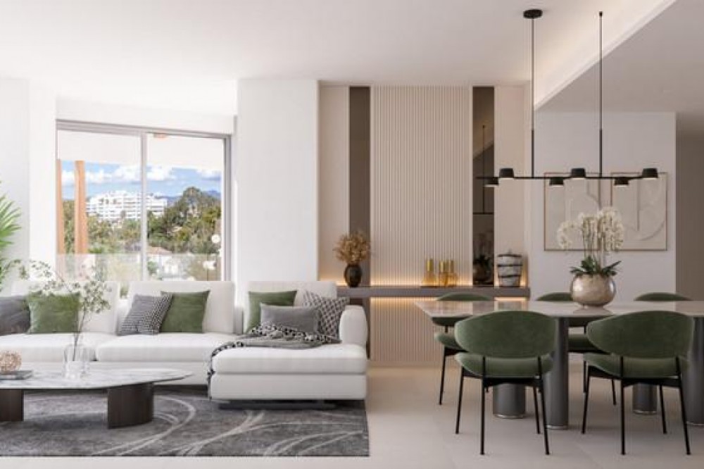 - New Development: Prices from €650,000 to €1,450,000. [Bedrooms: 2 - 3] [Bathrooms: 2 - 3] [Built size: 103m2 - 194m2]. A spectacular project of 34 amazing apartments and penthouses, of 2, 3 and 4 bedrooms, in a perfect location, for you to enjoy the Mediterranean lifestyle. This magnificent 4 bedrooms duplex welcomes us in a superb entrance hall that gives access to the generously sized living room connected with a modern open plan kitchen that have been superbly equipped with top-of-the-line appliances, on this level there are 2 bedrooms and in the upper level there are another 2 bedrooms en suite. The terrace of the property enjoys beautiful views over the Guadalmina golf course. The urbanization will have pleasant communal spaces such as a swimming pool, landscaped gardens, Co-Working space and fitness area. The complex, which will be completely gated, will also have permanent surveillance cameras and concierge service. In addition, this magnificent project is located within a short distance from San Pedro de Alcántara, in Marbella, Welcome to your New Home!