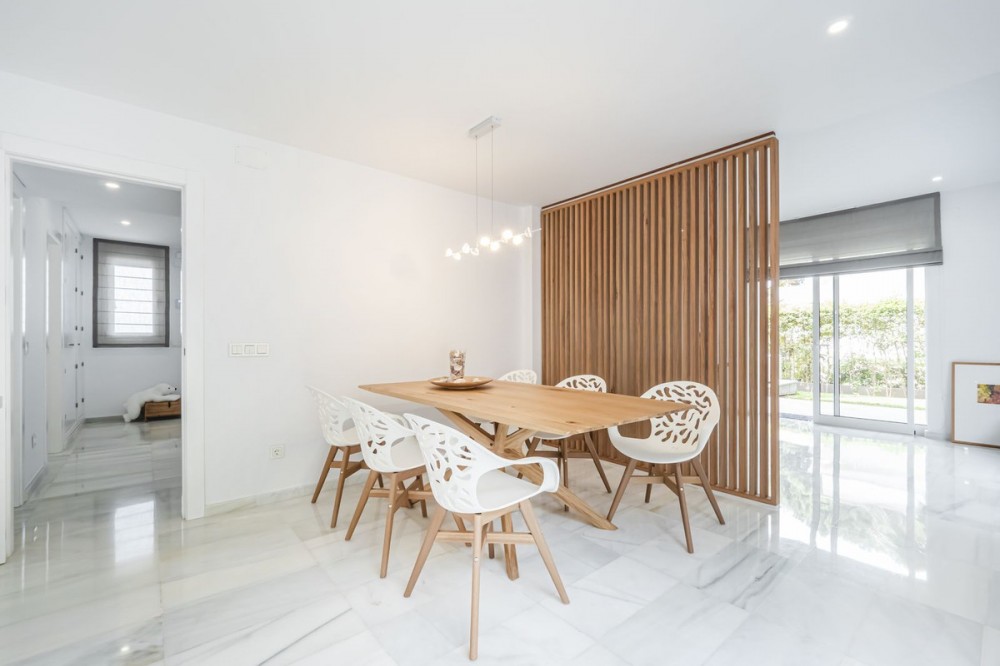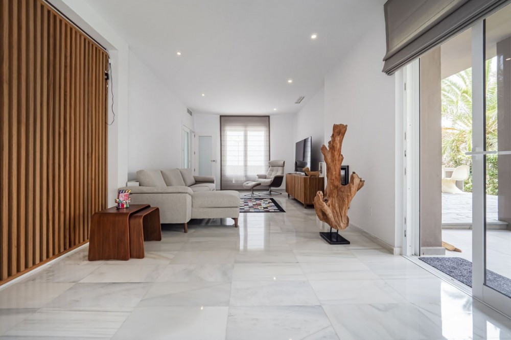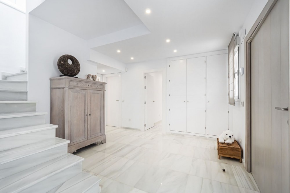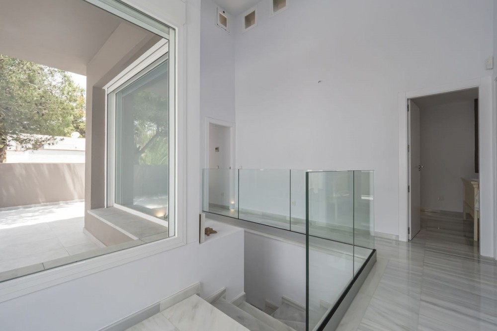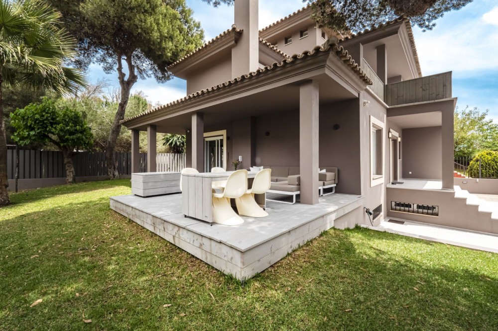- LOCATION, LOCATION, LOCATION. This Dwelling location is an absolute gift, a mere 50m from the sandy Elviria beaches, next to the most glamorous beach bars, eg. "La Plage de Casanis", 5* hotel beach clubs; traditional chiringuitos with the true Andalusian flavours, and all that with abundance of amenities and services such as pharmacy, schools, supermarkets, etc. ... everything one might need to live as a permanent home, or as a holiday property. This independent Villa plot amounts 518sqm, recently renovated to the highest standards both in building materials and construction, with attention to detail (the whole electricity system has been updated and improved, replacement of all the lightning devices, new A/C machinery at the ground floor, changes in the layout of the stairs at the basement to create a new room and a profuse variety of improvements have been made in these renovation works); the house adds up to 334sqm built plus a 43sqm partially covered terrace and a ground floor porch of 48sqm. Finally, a new pool has been built giving the property the icing on the cake. The home is distributed as follows: Entry hall with access to an ample living room with access to the terrace and joined to the dining area and the open plan kitchen with island. Besides, a bedroom with bathroom plus a guest restroom. On the first floor, three complete bedrooms with en suite bathrooms, all of them facing outside. On the basement, room for 4-5 cars, office space/bedroom, laundry room, bathroom and storage room. The property includes an own well. Due to location and features, this is a wise investment for a permanent home or as a holiday home with a huge potential for holiday rental.