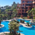 - Exceptional Upper floor apartment located in the private wing of suites in the prestigious Hotel Kempinski with stunning views to Africa and Gibraltar. The owner has access to the restaurants, bars and with direct access to the sea from this stunning beach front location. The sports and Spa facilities may be used at a discounted price. A private underground garage space and storeroom are included in the price. The large apartment has marble flooring throughout, new air conditioning units a fully fitted kitchen with dishwasher, washing machine, hob, oven, microwave and extractor fan. Both bathrooms are complete and to the finest of standards. The covered terrace is large and has views to the sea. Parking and storage.