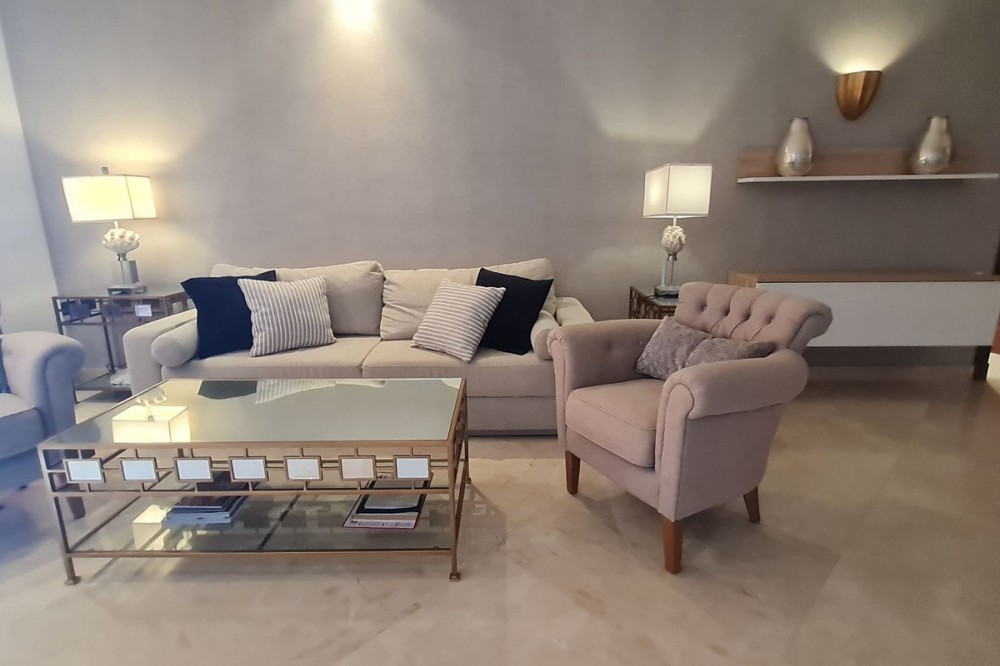 - Exceptional Upper floor apartment located in the private wing of suites in the prestigious Hotel Kempinski with stunning views to Africa and Gibraltar. The owner has access to the restaurants, bars and with direct access to the sea from this stunning beach front location. The sports and Spa facilities may be used at a discounted price. A private underground garage space and storeroom are included in the price. The large apartment has marble flooring throughout, new air conditioning units a fully fitted kitchen with dishwasher, washing machine, hob, oven, microwave and extractor fan. Both bathrooms are complete and to the finest of standards. The covered terrace is large and has views to the sea. Parking and storage.
