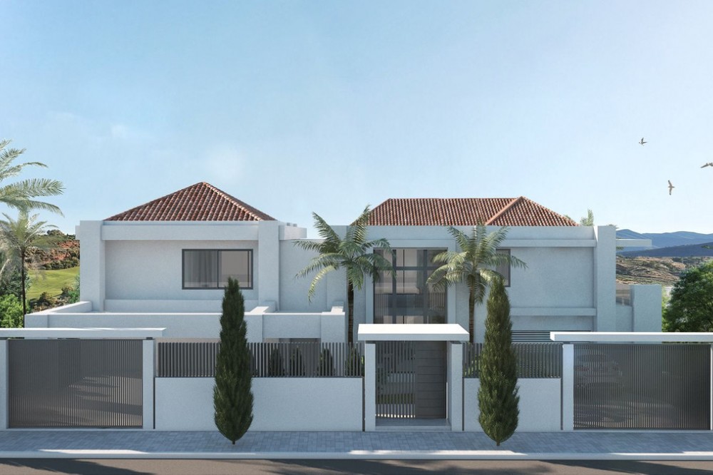 - Plot for sale with a modern contemporary style villa project with Andalucian influence, located in a unique and privileged prime south facing location fronting on the the 1st tee of Los Olivos in Mijas Golf, a step away to the La Zambra Hotel, of the unbound collection by Hyatt. Combining elegance with new standards of design and technology with refined materials of excellent quality will ensure this villa project fulfils today's upmarket demands. Large glazed spaces allow entering natural light, spacious rooms, carefully design to optimise the views, privacy and confort. Terrace, garden and infinity pool integrate indoor and outdoor space in perfect harmony with the golf course The price includes plot, geotechnical study, architect basic project and license. FEATURES GROUND FLOOR Entrance hall with guest cloakroom Spacious open plan lounge, dining and kitchen. 1 bedroom with ensuite bathroom and dressing room Covered terraces 44.28 sq mtrs Uncover terrace 43.06 sq mtrs Garage for 2 vehicles FIRST FLOOR Master bedroom with ensuite bathtroom, dressing room and private terrace of 30.16 sq mtrs Bedrom with ensuite bathrom, dressing area and private terrace of 8.41 Bedrooms with ensuite bathroom, dressing room and private terrace of 25.01 , All bedrooms with spacious south facing terraces fronting to the golf course LOWER GROUND FLOOR Multi-use area Toilet Service installations area Cinema room EXTERIOR Chill out area BBQ area with presinstallation for water and electricity Infinity salt water swimming pool with coloured LED lighting, Landscaped areas with sprinkler irrigation system, LED lighting outdoors Outdoor shower Water sheet Carport parking for 2 vehicles. OTHER FEATURES Stair protections and railings of laminated safety glass Interior carpentry in natural anodised aluminium with thermal break and double glazing with dehydrated air chamber inside. Armoured and wide entrance door to the property. Built-in wardrobes with lacquered sliding doors and completely finished inside. Porcelanosa, Keraben or Aparici large format porcelain tile floors through the villa and wall coverings in the bathrooms. Kitchen with high and low furniture of great capacity and modern line, silestone or granite worktop and equipment with NEF, BOSH or similar appliances. Sanitary ware Duravit, Roca , Porcelanosa or similar Taps and fittings Roca Grohe or similar Thermostatic showers in showers or bath Hansgrohe or similar. Air conditioning with aerothermal heat pump system and underfloor heating. Vehicle access gate to the plot in anthracite grey aluminium Smoke detectors in kitchen Domotic installation with smartphone control of lighting dimmers, bluetooth audio system in living room with 4 speakers, indoor and outdoor lighting control and blind control Alarm and security cameras around the perimeter of the house Total indoor built area 465.60 sq mtrs Total outdoor built area 204.70 sq mtrs Total plot area 1331.57 sq mtrs