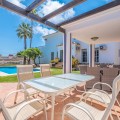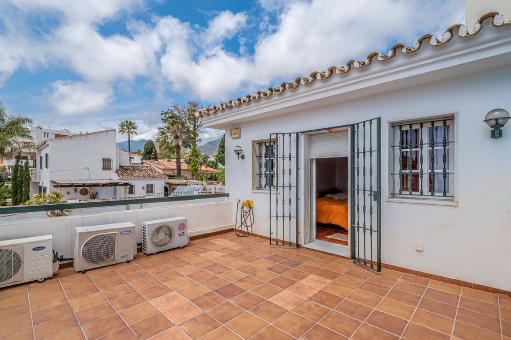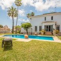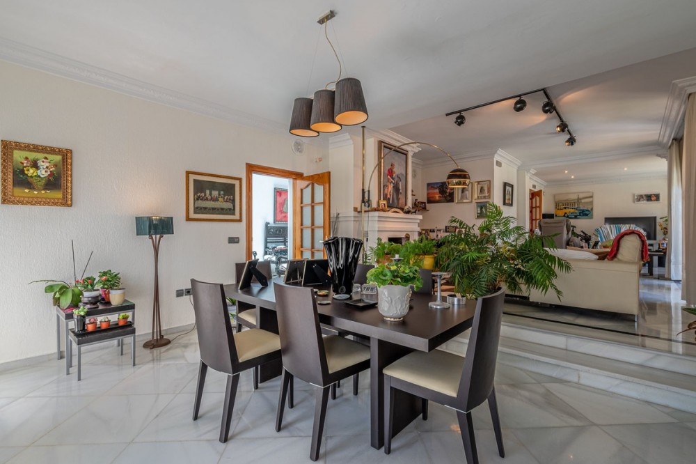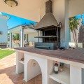- Magnificent Villa for sale with pool and private garden very close to the beach near the Puerto Marina in Benalmádena Costa. It is a villa with personality and its own style. Contemporary architecture on the outside joins with the Andalusian style to enjoy the Malaga climate throughout the year. The villa has 4 bedrooms with bathrooms en suite, two bedrooms with terraces of about 40 m2 each with sea views, dressing room, separate kitchen, dining room, large living room, Andalusian patio, basement with kitchen and guest room, sauna. The house has a private garden with palm trees, a private pool, a rest area with barbecue. Underground parking for two cars and open parking for two more cars. Near the villa there are shops, supermarkets, train station. 15 minutes walking to the beach.