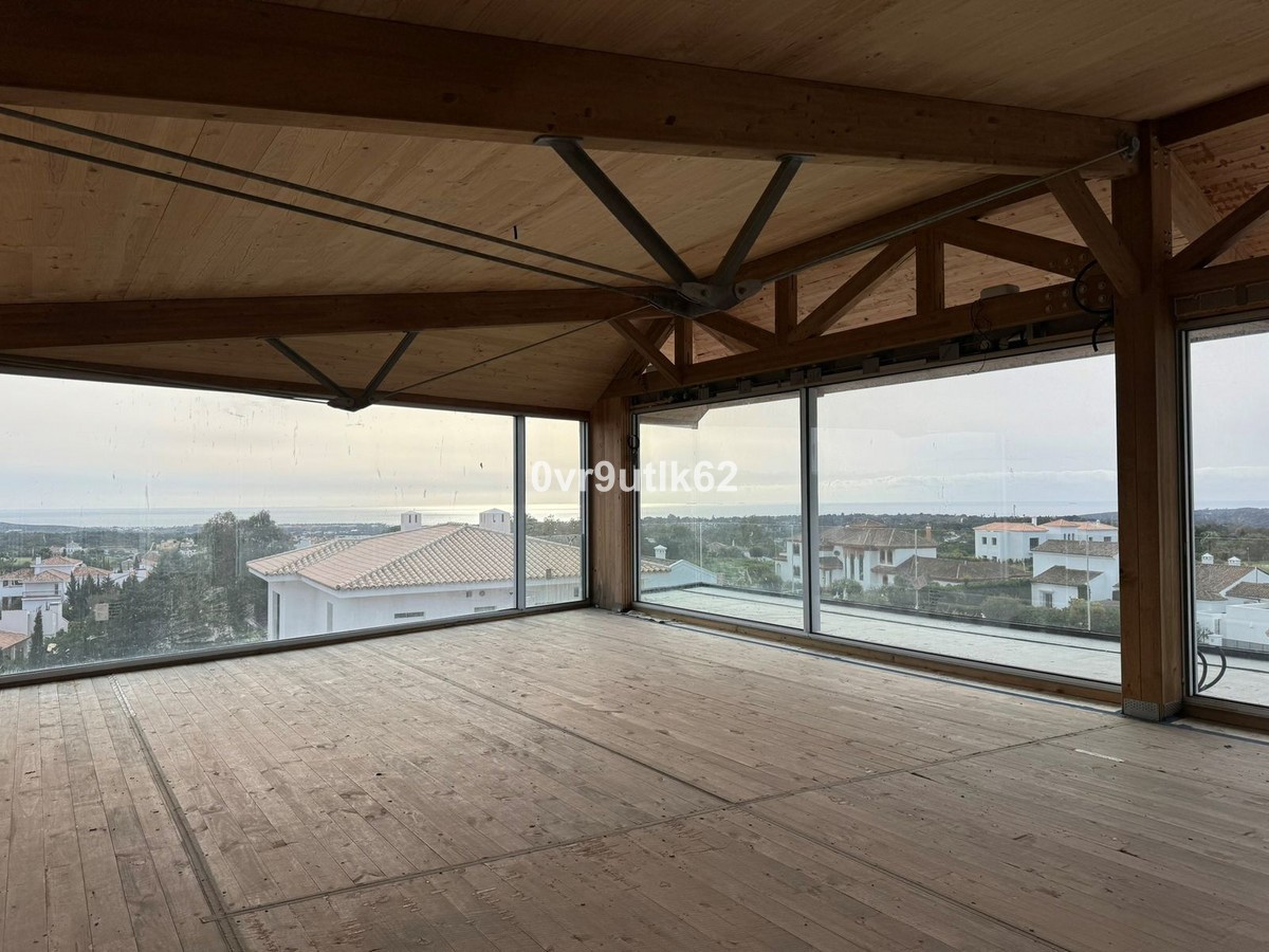 - Presenting an exclusive under-construction villa enveloped by captivating sea views in the prestigious La Reserva zone in Sotogrande. This remarkable property showcases eco-conscious luxury, nestled among verdant landscapes with a sleek, modern design. Created to blend environmental sustainability with sophistication, every detail has been carefully crafted to reduce its environmental impact without sacrificing style. At the villa’s heart is a spacious, open-plan living area featuring floor-to-ceiling glass walls that offer sweeping views of the coast, with vistas extending to the African coastline, Gibraltar, and La Reserva golf course. Perched in the hills, this architectural masterpiece integrates seamlessly with its natural surroundings. Built with sustainable, durable materials like CLT wood, known for its strength and earthquake resistance, the villa combines eco-friendliness with a cozy, rustic aesthetic. Situated within a gated, 24/7-secured community, the property sits on a peaceful cul-de-sac, a short drive from Sotogrande International School and close to renowned golf clubs like La Reserva and Valderrama. Additionally, Sotogrande port and nearby beaches are only a quick 10-minute drive away. Inside Villa Verde, sunlight pours through energy-efficient, floor-to-ceiling windows and strategically placed skylights, blending the indoors with the natural beauty outside. The open layout fosters a fluid connection between living spaces, emphasizing spaciousness and a harmonious relationship with the surrounding landscape. Villa Verde’s eco-friendly approach is evident in its thoughtful design. Passive cooling is enabled by natural ventilation through strategically positioned windows and adjustable louvers, minimizing the need for air conditioning. Insulation made from recycled materials ensures year-round temperature stability, while energy-efficient appliances further reduce energy use. Stepping onto the expansive terrace, a serene oasis awaits. A large infinity pool invites you for a refreshing swim while enjoying the endless ocean view.