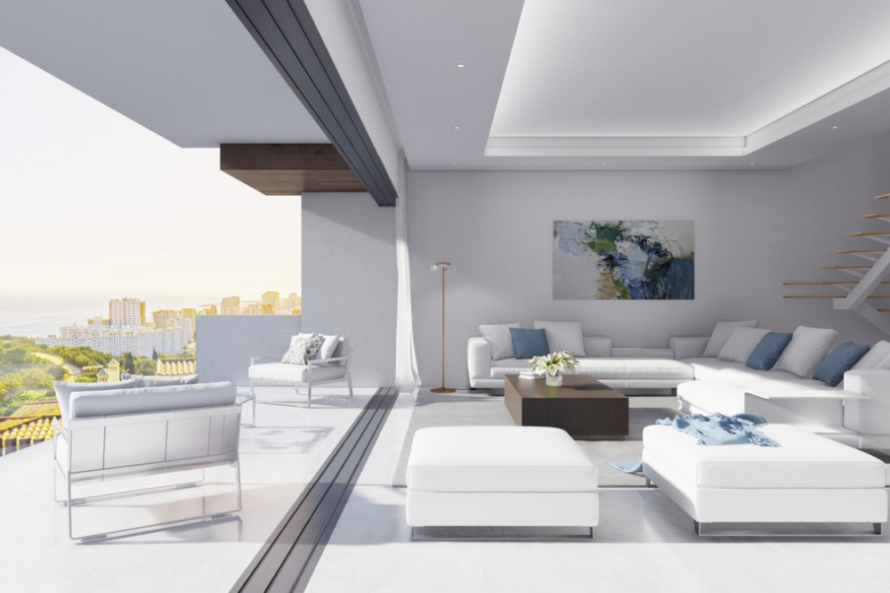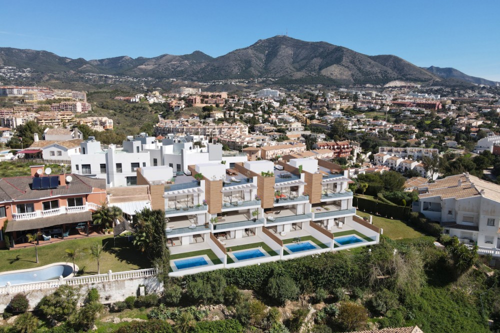 - New Development: Prices from €1,460,000 to €1,460,000. [Bedrooms: 3] [Bathrooms: 3] [Built size: 507m2 - 511m2]. This exclusive new development of four luxury semi-detached villas is located on the Torreblanca hill in Fuengirola, Malaga. In addition to the spacious interiors of the villas, they have generous terraces and balconies, designed to enjoy the warm and sunny climate of the Costa del Sol. The villas have been designed to a high standard and to maximise the functionality of all spaces. The villas face south and west, making the most of natural light. This new development supports sustainable development, aiming to achieve maximum energy efficiency and environmental friendliness. These three-bedroom, three-bathroom villas are divided over three levels. On the ground floor, there are large communal areas, a separate multi-purpose room that can be used as a guest room, gym, or even a home cinema, as well as a utility room, bathroom and toilet, storage and equipment rooms, and access to the swimming pool. On the entrance floor, there is an open, over 30 m² kitchen with its own terrace offering beautiful mountain views. The living room opens to the south and has a spacious terrace with breathtaking views of the Mediterranean Sea. Upstairs, there are three bedrooms and two bathrooms. The master bedroom offers stunning views of the Mediterranean Sea and the pool area, and has its own ensuite bathroom. Each bedroom has access to the terrace, and all bedrooms feature built-in wardrobes. In addition to the staircase, each villa has a private elevator for easy access between floors. The roof terrace offers breathtaking views of the Mediterranean Sea and the city of Fuengirola, with space for, for example, a jacuzzi and an outdoor kitchen. Key features: - Total built area of the villas: 507–548 m² - Massive terraces with sea and mountain views, plus a spacious roof terrace - Private gated parking for two cars - Efficient soundproofing in the walls - Aerothermal air heating and cooling system with energy-efficient appliances - Ventilation system with heat recovery - Water-circulating underfloor heating - High-quality ceramic tiles by Tau - Cortizo aluminum-framed double glazing with reinforced thermal and sound insulation - Premium Roca bathroom fittings - Each villa has its own swimming pool with a saltwater system - Elevator - Ground floor facilities for home theatre and gym - Electricity reserve for sauna rooms - Reserve for electric car charging
