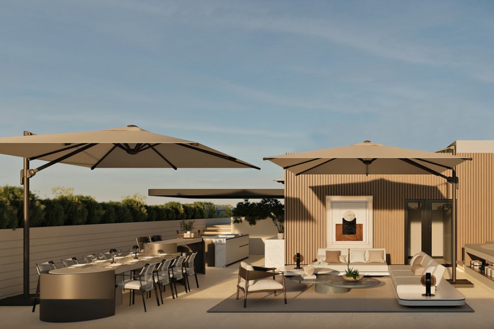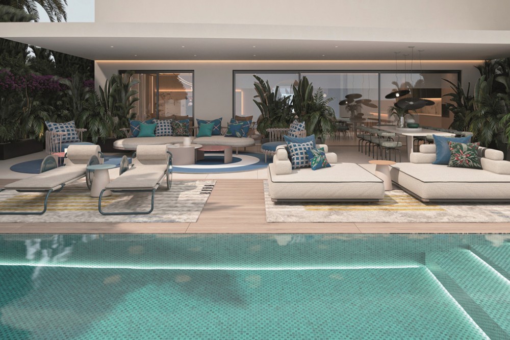 - New Development: Prices from €4,480,000 to €5,400,000. [Bedrooms: 3] [Bathrooms: 3] [Built size: 269m2 - 293m2]. Located on the beachfront in Marbella, this development offers 64 spacious apartments and 32 semi-detached villas with exceptional qualities. It also features spectacular communal areas, including a social centre with services that are unique on the Costa del Sol. The project's commitment to the highest standards is reflected in all areas, especially in its impressive and professionally landscaped communal spaces. The Social Club, with its innovative and avant-garde architecture, located in the highest part of the project, houses a complete SPA, a 200 sqm indoor gym, an outdoor gym with a yoga zone, a coworking area and an indoor heated pool. The jewel in the crown of this iconic social club is its impressive infinity pool, suspended 8 metres above the ground, offering panoramic views of the sea and mountains while enjoying a refreshing drink at the glamorous cocktail bar that surrounds it. At this project, every home has been meticulously designed to provide a residential experience of unparalleled quality. Premium large-format flooring adds elegance and durability, while the spacious kitchens by Pedro Peña Design and high-end Gaggenau appliances offer an elevated living experience. The entire property is controlled through a very potent domotic system. The entire property is controlled through a robust home automation system. In addition, each property boasts a private swimming pool and jacuzzi, a true oasis of relaxation and pleasure to enjoy moments of tranquillity and fun.