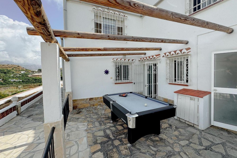 - Situated in one of Nerja’s most desirable residential areas, this exceptional villa enjoys the best of both worlds - peaceful countryside surroundings with spectacular sea views, while remaining just minutes from the heart of town. Located only 750m from the Marinas de Nerja hotel on Playazo Beach. The property offers 315 m² of living space on an expansive 3,600 m² plot. 6 bedrooms, 3 bathrooms, 3 kitchens and a large private pool (13.5m x 4.5m). Bathed in natural light, the home features generously proportioned rooms and solid construction with thick walls that help maintain a comfortable temperature year-round - warm in winter and cool in summer. Every space has been thoughtfully designed to provide comfort, privacy, and a seamless connection to the stunning natural landscape. The upper level welcomes you with bright, open interiors. A spacious lounge with a fireplace and large windows opens onto a 30 m² terrace boasting panoramic views of both the sea and mountains. The master suite is also located on this floor, complete with an ensuite bathroom and a private office area. Designed with entertaining in mind, the lower level offers a fully equipped kitchen, an additional living area, three bedrooms, and direct access to the patio. Outside, you’ll find the pool area and a dedicated billiards space, perfect for hosting family and friends. A separate guest house adds further flexibility, featuring its own bedroom, bathroom, kitchen, and living area - ideal for visitors or extended family. The exterior spaces are equally impressive. The beautifully maintained gardens, dotted with fruit trees, create a peaceful oasis. A private infinity pool overlooks the mountains, while a panoramic terrace provides unforgettable Mediterranean sunsets. There is also a barbecue area for outdoor dining and a 20 m² private gym for those who prioritise wellness. Originally built in 2004 and recently updated, the villa has been carefully maintained and enhanced with modern improvements that combine lasting quality with contemporary style. The property is fully enclosed for privacy and security, with a gated entrance and internal access ensuring peace of mind. Air conditioning throughout and the addition of solar panels provide efficient climate control while reducing energy costs and promoting sustainability. With over 315 m² distributed across three levels, the layout is both spacious and versatile, offering multiple terraces and independent guest accommodation - ideal for family living. Water deposit that has a back up supply of 6 weeks water (important in the campo). Finished to a high standard with quality materials and refined design, the villa achieves a perfect balance of elegance and comfort. An outstanding investment opportunity in a prime residential location, offering both lifestyle appeal and strong long-term value.