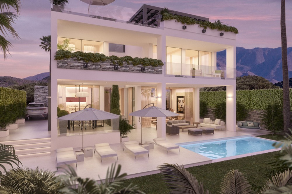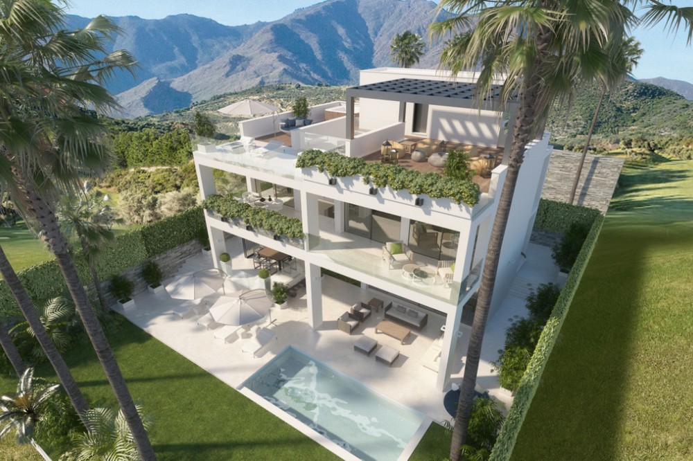- New Development: Prices from €1,400,000 to €2,250,000. [Bedrooms: 3 - 4] [Bathrooms: 3] [Built size: 316m2 - 470m2]. An exclusive development of seventeen designer villas located in the Estepona golf course, where luxury and sustainability come together to create unique, welcoming homes with expansive open spaces and panoramic views. These homes stand out for their contemporary design, crafted by the internationally renowned studio Fran Silvestre Arquitectos, based in Valencia, Spain. Every detail of the residences has been meticulously designed to achieve the perfect balance between functionality, aesthetics, and comfort. The properties feature high-quality finishes and cutting-edge energy efficiency technology, ensuring not only a minimal environmental footprint but also significant energy savings. This development is characterized by its spacious interiors, designed to maximize the sense of freedom and comfort. Large open areas provide a seamless connection with the surrounding natural environment, while spectacular panoramic views make each home a truly exceptional place to live. More than just a collection of homes, this is an opportunity to reside in a one- of-a-kind space designed with well- being and environmental responsibility at its core, located in one of the most sought-after destinations.