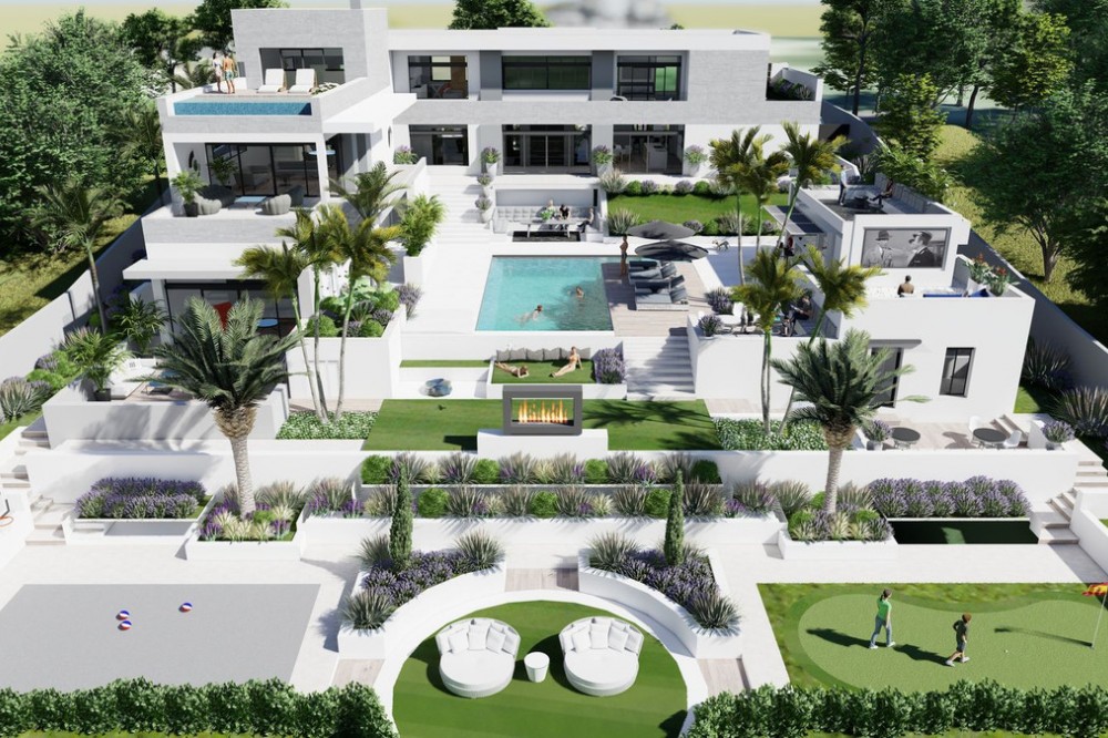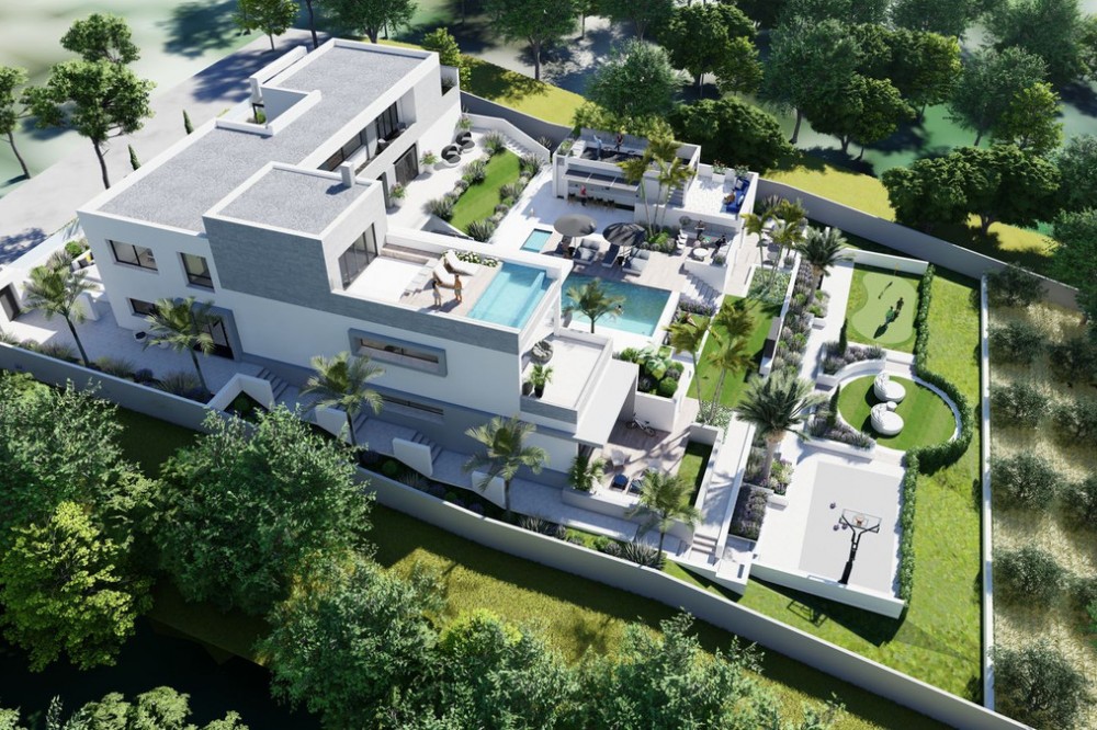 - An incredible property on a plot of 2.688 m2 with stunning open views of La Reserva Golf course, centrally located in the peaceful, highly secure, gated, Sotogrande community. The essence of indoor/outdoor living is captured perfectly in this luxurious retreat. Extensive use of glass has capitalized stunning open views and a dream like living space with many different levels and zones giving an expansive sense of volume and freedom. This unique project has a dynamic and meticulously intelligent open-plan layout, functionality, with refreshing design airflow and vast amounts of natural light. The estate includes two pools within a Mediterranean garden, 4 bedrooms, 5 bathrooms and additionally a fully equipped independent guest apartment. An ultimate functional working office and homework spaces, also a gourmet kitchen with a barbecue area, a television room, a gym, spacious private terraces, and then rare luxuries including an amazing outdoor cinema, a rooftop chill out terrace, even a one of a kind pool bar. Furthermore a putting outdoor practice green along with a basketball ½ court . Of course, contemporary and natural materials allowed us to achieve a sophisticated family home. The property facilitates entertaining while allowing for relaxation and privacy when desired. The aim is comfort for all the family and guests in independent yet harmonious areas. Certainly, this timeless residence is a private oasis for its owners. Perfect family home, near all amenities, Sotogrande International School, La Reserva and Valderrama golf courses, in the midst of one of the most exclusive neighbourhoods in southern Europe. The price is for the plot and the project.