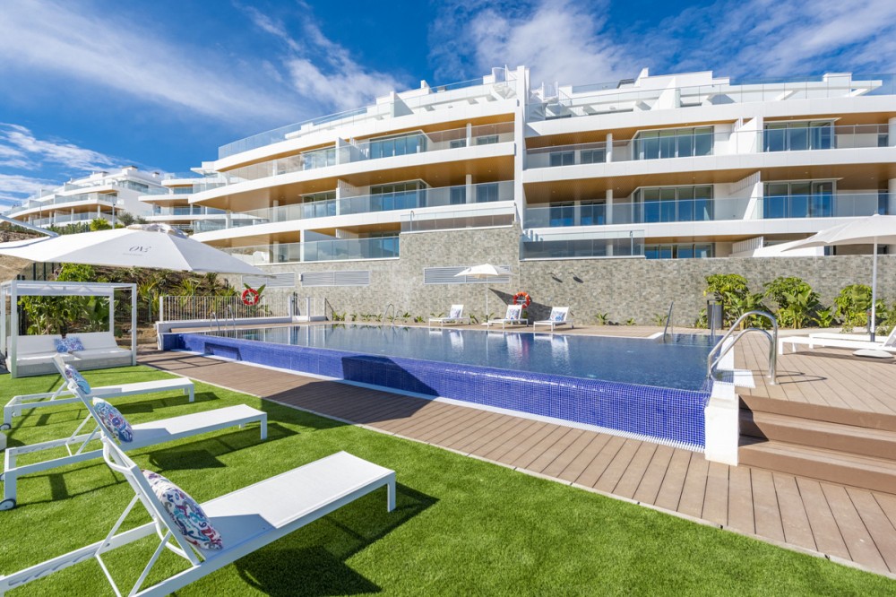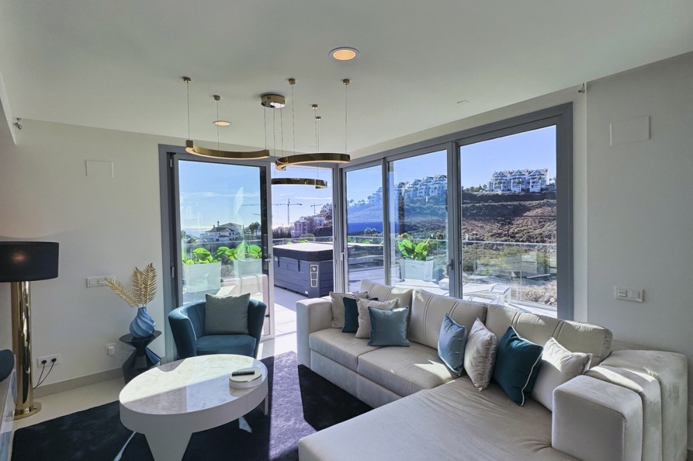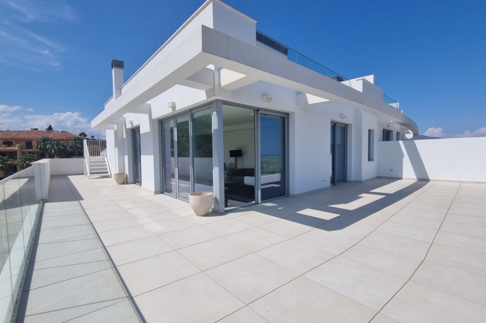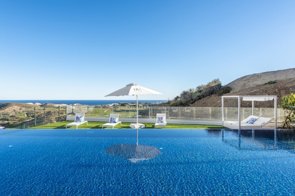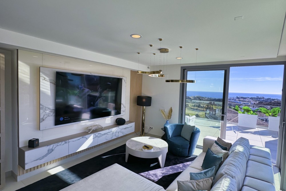 - Spectacular penthouse with solarium with panoramic views of the sea facing the Calanova golf course. The property is located in the highest portal of the complex, it enjoys the best views and privacy. The penthouse with a 180m2 terrace and solarium with a lounge area, outdoor dining room from which to enjoy the best views. From the terrace you can access the solarium, the area with the most privacy and where you can set up an outdoor kitchen area with a chill out area. It has a living-dining room, an equipped open-plan kitchen, 2 bedrooms with 2 en-suite bathrooms and a guest toilet. 2 parking spaces are included with direct elevator access from the property, and a large storage room. The penthouse is designed using the best construction materials and the most modern technology on the market. It has hot/cold air conditioning controlled by the best Air Zone home automation control system, underfloor heating throughout the interior area, LED lighting, designer kitchen with NEFF appliances, dressing areas in the bedrooms and large porcelain floors. This amazing urbanization has the best common areas on the Costa del Sol, owners can enjoy an HD Home Cinema with the latest image and sound technology, gym, Premium wine cellar, social club, business centre and a complete SPA which includes a thermal area, Jacuzzi, sauna, Turkish bath and hydro massage showers. For those who like life outside, they can enjoy 2 outdoor pools, one of them infinity type with panoramic views of the sea; the other with a bar area and beach edge. It is a closed complex with a concierge service and security control with 24-hour surveillance cameras.