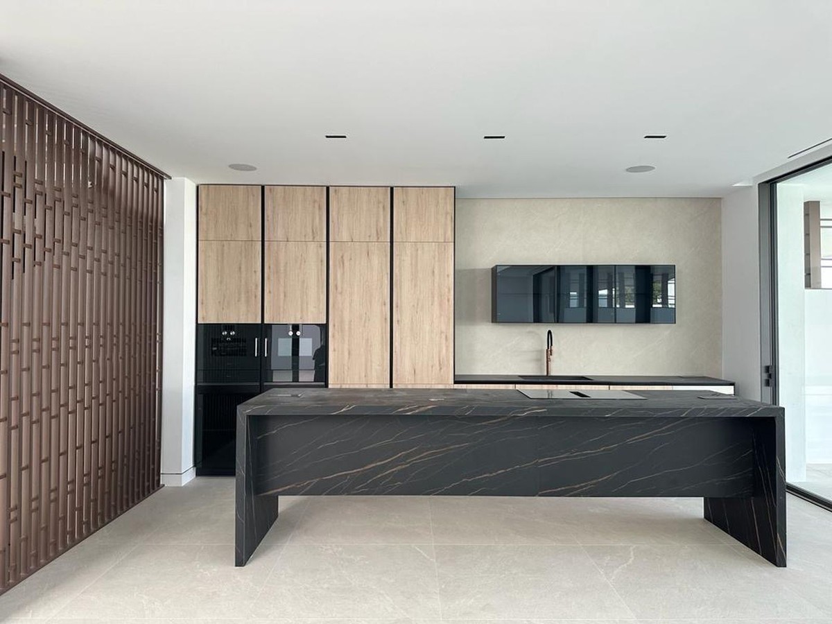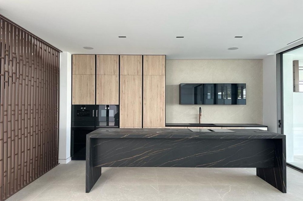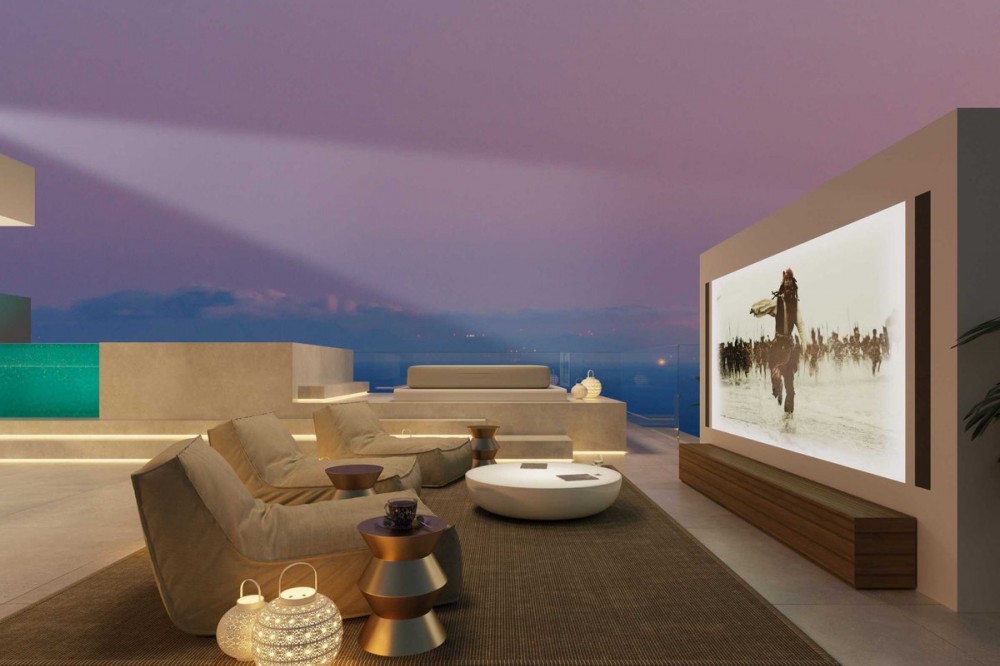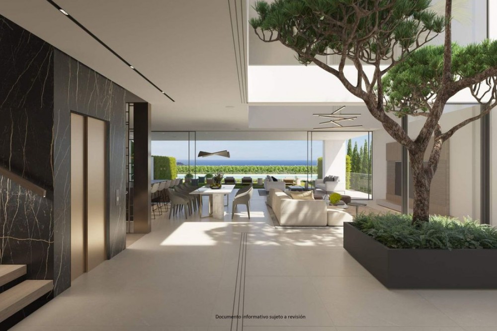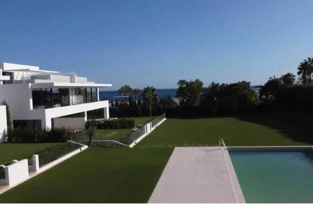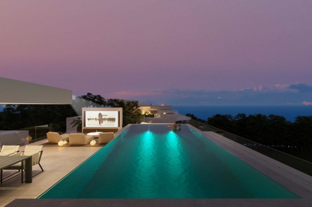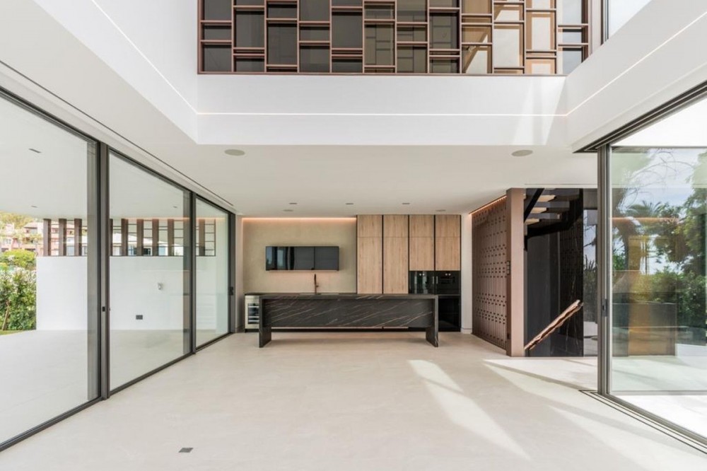 - This magnificent Viila is located in a gated and secured residence of 12 Villas on the luxurious Marbella Golden Mile. It is ideal for those who seek comfort and luxury of one of the most prestigious areas of the entire Mediterranean region. Villa was built in 2023. The beautifully built Villa on 4 levels offers high quality, stylish and bright living room open to the large and elegant terrace with stunning panoramic views towards the sea. All 2 bedroom suites include floor-to-ceiling windows, oak flooring, Porcelanosa marble and hardware throughout, showcasing an elegant and refined modern style. A sleek minimalist kitchen has integrated Gaggenau appliances. All 4 levels are connected by a modern elevator. Terraces leading out to a private area of garden – as well as having access to the beautifully landscaped communal gardens and swimming pool. Roof terrace with private swimming pool and outdoor cinema. A customizable basement provides ample space for an additional third bedroom, a home gym or room for any other use, such as an office. Underground parking for 4 cars. It is facing south-west, admires spectacular views of the Mediterranean Sea, Puerto Banus marina and has the legendary La Concha Mountain as a background. Surrounded with high-end properties of the Golden Mile, this perfectly executed contemporary property is just 250 meters away from the sandy beach and an array of amenities, well-known restaurants and bars, 5-star iconic hotels like Puente Romano, designer boutiques, shops and supermarkets. Unique opportunity to own a contemporary villa – one of just 12 – with panoramic sea views set on the world-famous Golden Mile!