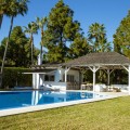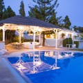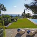 - INVESTORS DREAM Luxury villa set in beautiful tropical gardens with amazing sea views from everywhere. One of east Marbella finest villa, this 7 bedroom 9 bathroom luxury villa has everything you could want, large bright airy rooms all with great views of the gardens then out to sea, beautiful established tropical gardens with a fantastic pool and poolside area. The 12 meter by 7 meter heated, salt water pool is enhanced with a very large bali style bar/kitchen and seating area, sauna and large jacuzzi all with outstanding sea views, a great area for entertaining. The villa has an Ibiza style to it, very big comfortable rooms flowing into each other, all the bedrooms are well thought out with great light and views with the master bedroom taking your breath away, large glass doors leading out to an amazing rap around terrace. The villa is in the middle of one of the best resorts in Marbella, Hacienda Las Chapas with its 24 hour guards, manicured street and great communal areas. Even though this beautiful villa is central to the whole resort, no part of the villa or gardens is overlooked.