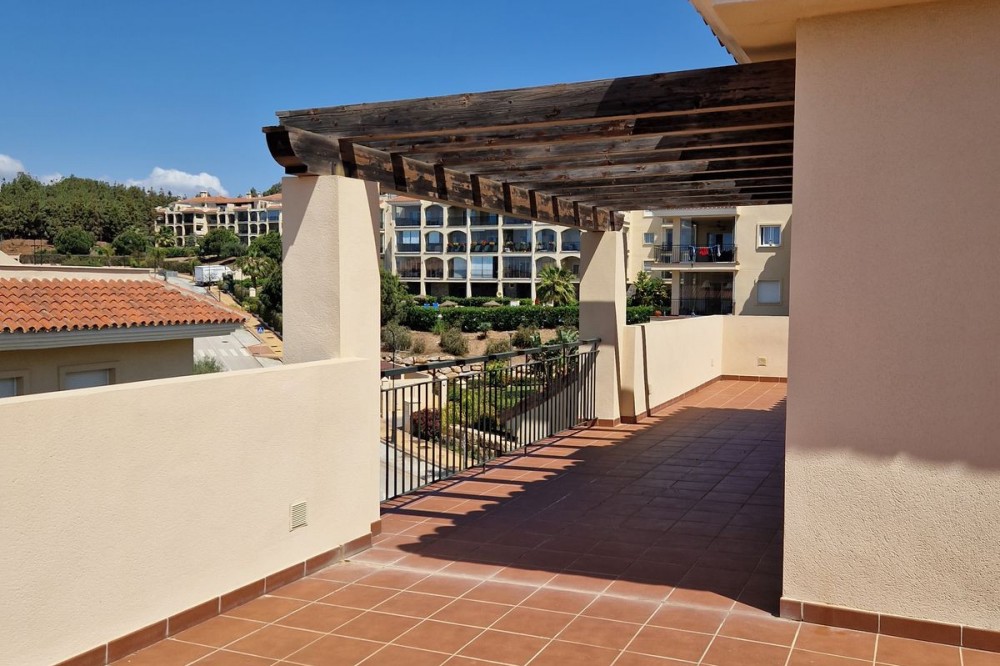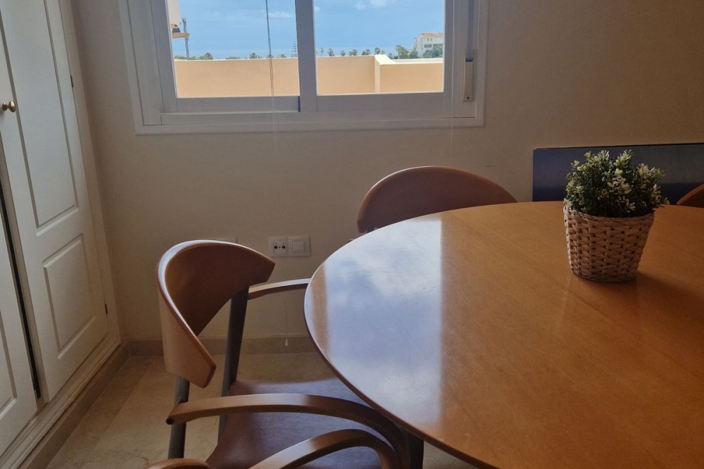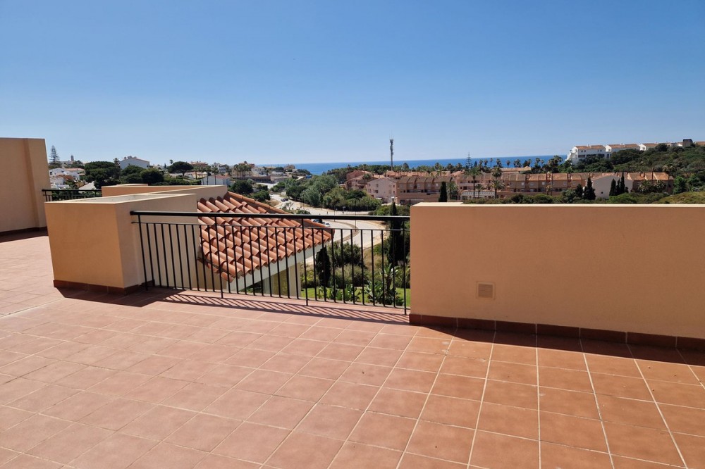 - PENTHOUSE WITH THREE BEDROOMS, SEA VIEWS AND HUGE TERRACE. translate into English: *Penthouse for sale in Mijas Costa - Sea views*. For sale penthouse in the area of El Chaparral, just *8 minutes walk from the beach. Its location is ideal, with direct access to the highway and 6 minutes drive from the Miramar Shopping Center. The property has 106 m² built and is distributed in: - 3 bedrooms, one of them with bathroom en suite. - 2 complete bathrooms. - Living-dining room spacious and bright. - Independent kitchen with laundry room. - Parking space and storage room included. From the terrace, it offers open views to the sea in a quiet environment. The urbanization has gardens and swimming pool in a well maintained community. For more information or to arrange a visit, do not hesitate to contact us. Translated with DeepL.com (free version)