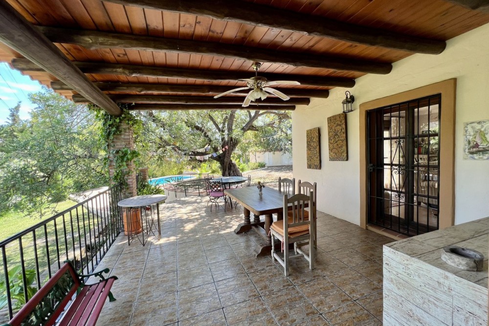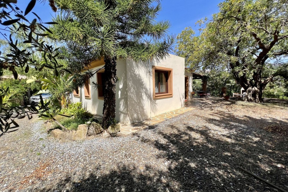- Charming Country Estate for Sale in El Velerín, Estepona Nestled in a privileged natural setting, just minutes from the beach and the center of Estepona, this enchanting Andalusian-style country estate offers the perfect blend of rustic charm and modern comfort. Set on 8,000 m² of land surrounded by lush Mediterranean and tropical vegetation, the property enjoys its own river water supply, several terraced levels, a water reservoir for irrigation, and olive, avocado, and mango trees, creating an authentic oasis for nature lovers. The main house, measuring 155 m², has been fully renovated and exudes warmth and character throughout. It features two spacious double bedrooms, a large living-dining area with an impressive traditional fireplace, and air conditioning to ensure year-round comfort. From the living room, large glass doors open directly onto the terrace and beautifully landscaped gardens. The generous kitchen, complete with a pantry, is designed for both everyday living and culinary enjoyment. It opens onto a covered porch of approximately 40 m², ideal for outdoor dining and family gatherings in a serene environment. The mature garden is centered around a majestic carob tree, offering natural shade and a relaxing ambiance beside the private swimming pool, which is conveniently accessible from the house. A truly charming finca, perfectly integrated into its natural surroundings yet only a short drive from all amenities, beaches, and the vibrant atmosphere of Estepona town.
