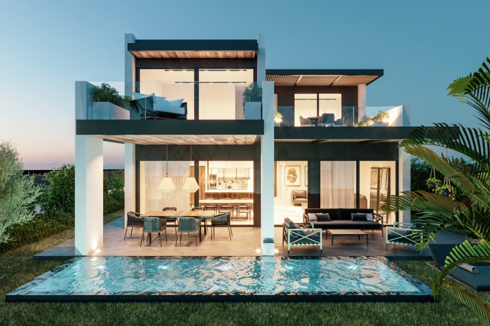 - New Development: Prices from €2,500,000 to €2,500,000. [Bedrooms: 4] [Bathrooms: 4] [Built size: 347m2]. Discover the collection of eight exclusive designed residential villas, set in the heart of Golf Triangle, Marbella. LOCATION The New Golden Mile is the name given to the stretch of coastline between San Pedro Alcántara in Marbella and Estepona. Approximately 45 minutes from both Gibraltar and Málaga airports, and within a short drive from Puerto Banús, Marbella, Estepona and San Pedro, the New Golden Mile continues to grow in popularity. It's home to some of the most established complexes, located within walking distance of shops, restaurants, schools and the beach. CONCEPT An exclusive collection of contemporary four-bedroom villas that flow seamlessly onto the lush fairways of El Campanario Golf Course. These residences embody the perfect harmony between nature and architecture, where striking exteriors meet exquisite interior craftsmanship. Each villa offers a unique layout, creating a distinct living experience tailored to your lifestyle. Expansive open-plan living spaces, fully equipped designer kitchens, generous en-suite bedrooms, and abundant built-in storage define every home. For those seeking versatility, the larger residences feature additional rooms that can serve as elegant home offices or extra bedrooms. Private swimming pools and beautifully landscaped gardens offer serene views of the golf course, making every moment at home a refined escape in the heart of Marbella's golfing paradise. VILLA This villa is an architectural gem that blends modern lines and premium materials with a warm, timeless character that makes it inviting all year round. With 4 bedrooms and 4 bathrooms, this exclusive property has been designed to deliver the perfect balance of elegance, comfort, and style. From the elegant entrance hall, you are welcomed into a spacious, light-filled living and dining area with an open-plan kitchen featuring a laundry space, seamlessly connected to the porch and a stunning private swimming pool. On this level, you will also find a guest bedroom - which can also serve as a home office - and a guest bathroom. If you wish to elevate your lifestyle even further, a sauna, smart home system, gym, and custom wine cellar will seamlessly enhance your day. Upstairs, the master suite boasts a walk-in dressing room, an en-suite bathroom, and direct access to a large terrace with views. Two additional bedrooms and a full bathroom complete this floor. The 157.82 m² basement offers a bright, multi-purpose space with natural light, a full bathroom, and a technical room - perfect for a gym, home cinema, or entertainment area. This villa is more than just a home - it is an exclusive lifestyle in the heart of Marbella.