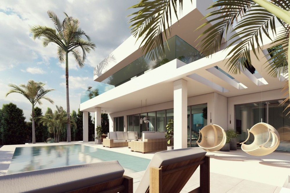 • New built modern south facing villa, just 250m from the Mediterranean Sea near San Pedro town. The property is built over three floors plus rooftop terrace with panoramic views to mountains and the sea. Excellent location for holidays and perfect for whole year living - all amenities are nearby, great schools in vicinity and best golf courses are only short drive from home. New built villas are rare to find in this beachside location - this new built villa represents excellent investment at great price €/m2. Some of the features include solar panels, lightning with Wi-Fi dimmers controllable by mobile phone, preinstallation for electric blinds and thermo glazing on first floor. Please contact us for more detailed information and viewing requests.