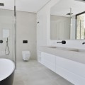 - Modern luxury villa with exceptional qualities, located in a gated community composed of only 15 villas. The community has 24-hour security guards and concierge services, and is located in a green oasis on the edge of the famous Golden Mile, a few meters from the beach and a few minutes walk from the old town. The villa is built on a plot of 885sqm and has a total living area of 730sqm. It has a large terrace of 225m2 and offers 4 bedrooms and 5 bathrooms. Inside, there is a spacious living room, an American kitchen equipped with furniture and appliances of the highest quality. In addition, the villa has a private elevator that connects each level of the property, a cinema, sauna and hammam, and underfloor heating. On the roof, there is a solarium that offers beautiful sea views. The villa also includes a private garage for 2 cars and 2 additional parking spaces. Both the garden and the pool of the villa are centrally maintained by the community, which provides a carefree lifestyle. The construction of the villa is completed, which means it is ready to be inhabited and enjoyed by its owners.