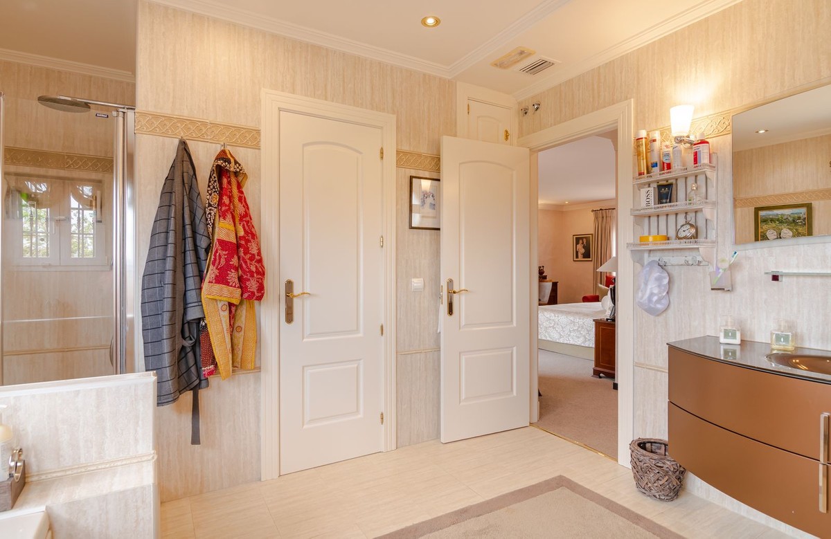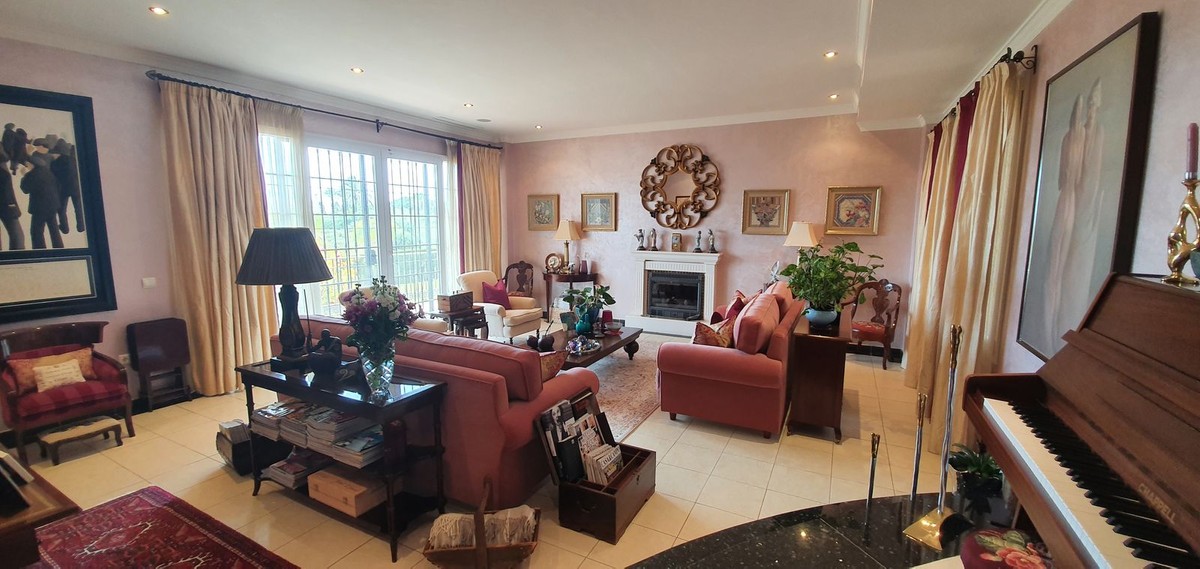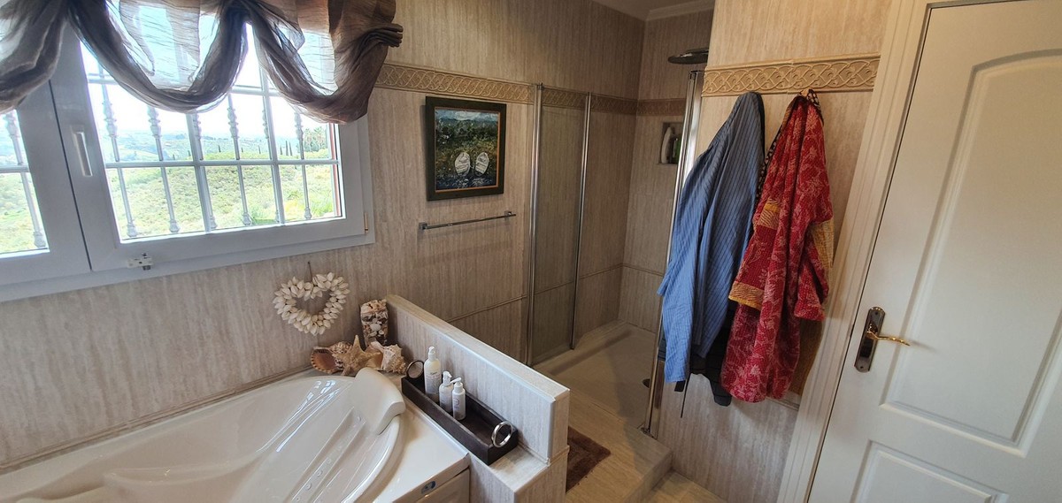 - IMPRESSIVE DESIGN VILLA WITH PANORAMIC VIEWS TO THE MEDITERRANEAN SEA, COSTA DEL SOL Andalusian style, immaculate property in great condition. 5 bedrooms, 4 bathrooms, 1 toilet, sauna, private infinity pool overlooking the sea. Very quiet and very private area to enjoy the tranquility and atmosphere of the area. The property consists of 623 m2 built on a 10,000m2 plot. 360º view of golf, mountains, sea and more. Upon arriving at the property, passing through its automatic gate, you reach a road that leads to the entrance of the property, easily parking more than 10 cars inside it. You enter a very stylish hall, it is a property that combines the rustic Andalusian style and the modern. On this floor we find 2 very spacious rooms with direct access to the infinity pool area, a dining area for more than 14 diners, a large kitchen of the highest standing, a large pantry prepared for large events, a barbecue, infinity pool of more than 60 square meters heated, gardens in perfect condition, area of fruit trees. On this floor we also have access to the rest of the property's floors, including a separate one for the service apartment. If we go up to the second floor we find a reception area that gives access to a large main room, completely private from the rest of the house, in it we have a bathroom with all the necessities en suite and a large L-shaped dressing room. Here we have access to a terrace with great views of the pool, sea, mountains of Mijas and golf course. On the ground floor we have the basement area, which can be adapted for a games room, cinema, gym, whatever suits you best with more than 80 square meters and access to the garden, 3 bedrooms, one of them with an en-suite bathroom and another bathroom to share between both rooms. From this floor we have direct access to the Sauna area with a complete bathroom for the pool area. The property has double glazing in all its rooms, all of them being large and has a water tank of 50,000 liters of water to keep as a reserve and use for the house. It has air conditioning and central heating. A house to enjoy the surroundings, the tranquility and the proximity to all services. 25 minutes to Marbella 10 minutes from Cala de Mijas 10 minutes from Fuengirola 25 minutes from Malaga Costa del Sol AGP International Airport 2 minutes from golf 2 minutes from the field and hiking area. If you are looking for something exclusive, do not hesitate to visit it.