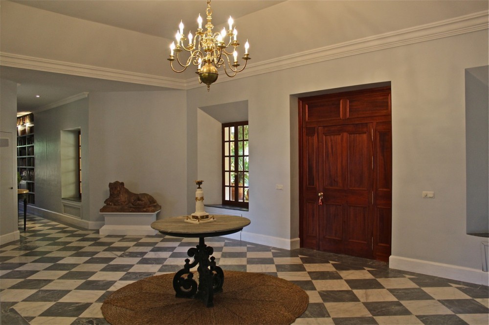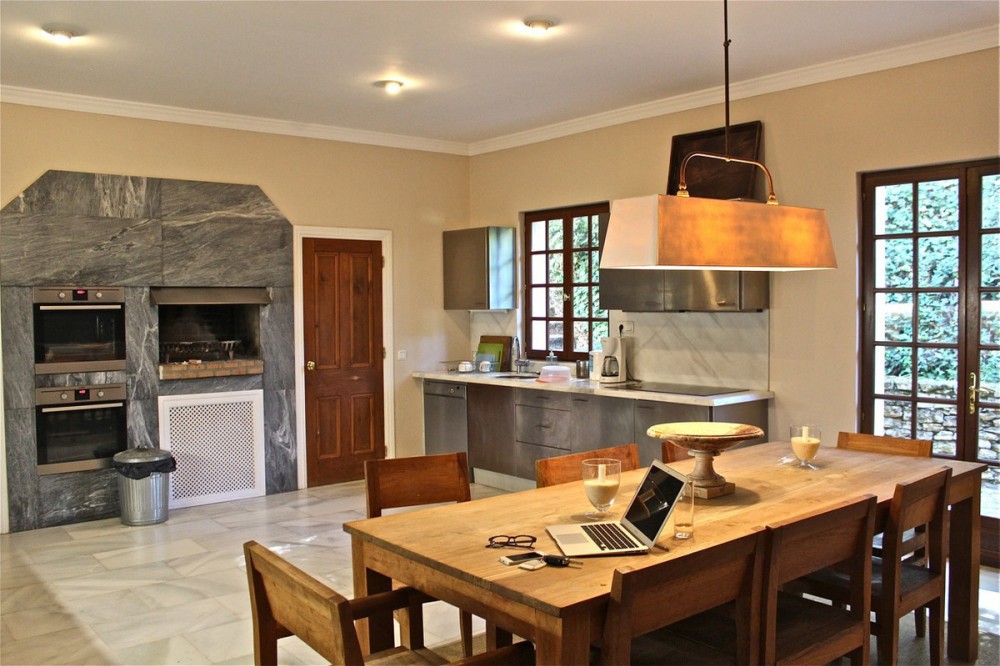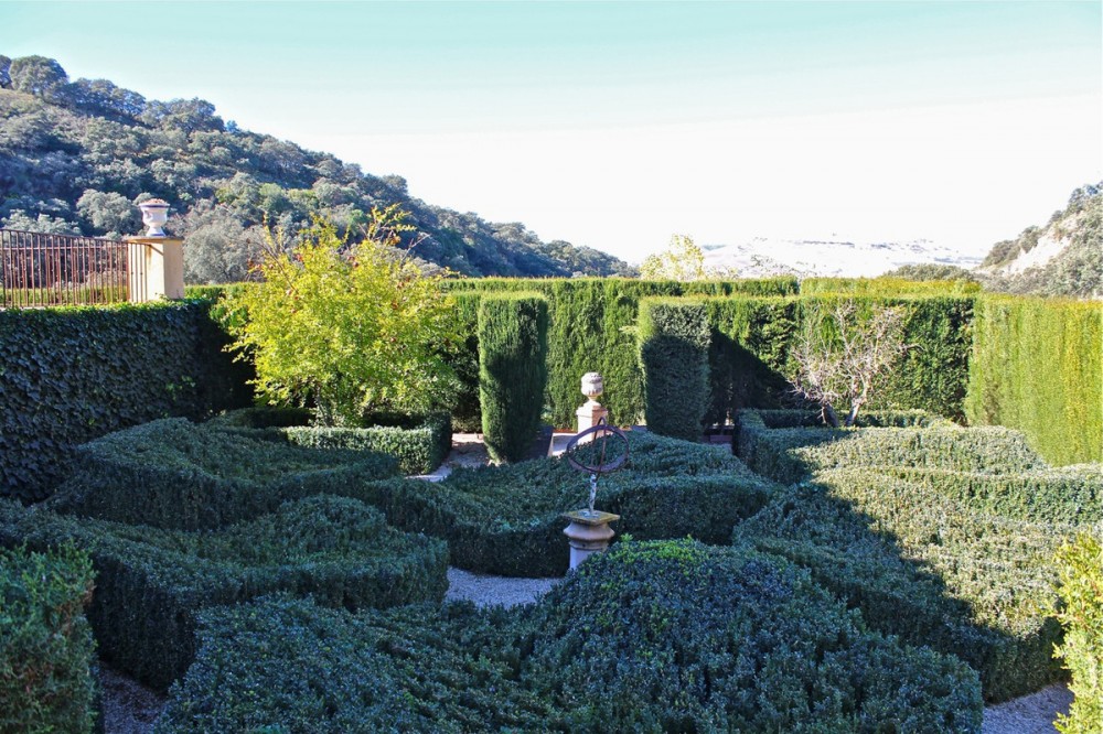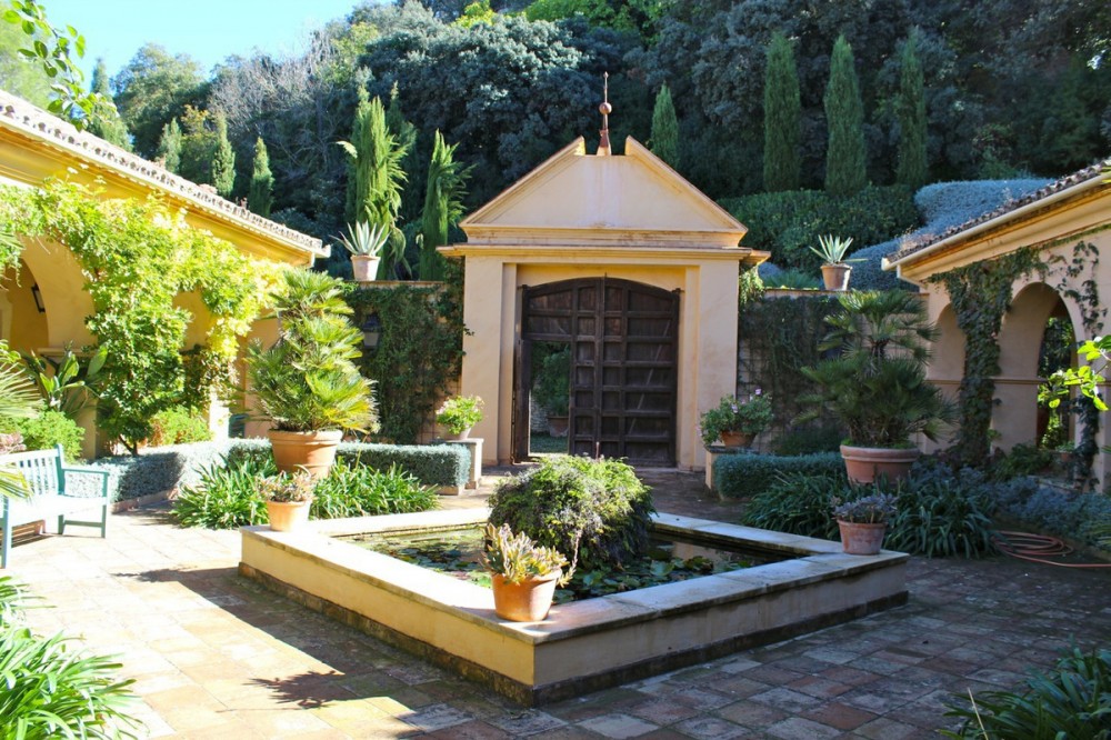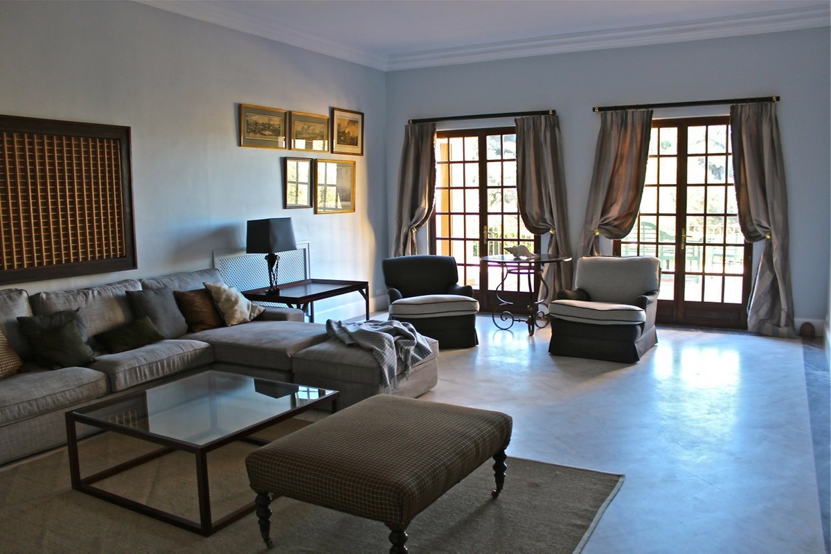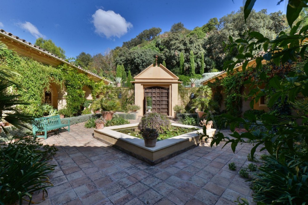 - One of the most imposing and spectacular houses in Spain, it is set in a totally private valley surrounded by hillsides and rich forest on a rural property of 260,000m2. This palatial style property is located 14 kilometres north of Ronda, Hemingway's favourite town in Spain, with its famous bridge and bullring, the oldest in the country. The villa is designed and built to the exacting specifications of its owners 10 years ago, and is a reflection of their good taste. Almost 800m2 built. You enter through a typical Andalusian courtyard with large vegetation and a sense of serenity, a fish pond in the centre and different living areas. A hallway runs the length of the central wing of the house, at the end of the hallway is the fully fitted kitchen with top quality appliances, stainless steel cupboards and marble surfaces with direct access to the front patio and gardens with barbecue area, laundry room and utility room. On the opposite side is the dining room of enormous elegance with an 18th century mahogany dining table with French windows overlooking the well maintained lawn and surrounded by a pretty flower bed, a beautiful pergola and barbecue area for alfresco dining. The next room along the hallway is the "little" sitting room, a very relaxing room, with double doors opening onto the outside terrace. The spacious main living room with marble floors comes next with a huge fireplace and a hand-woven Indian carpet which was specially commissioned in Jaipur and took eight months to make. Next is a study or office, at the other end of the hallway is the very elegant and beautifully furnished master suite, with its own sitting room and wonderful views from the French windows that face two sides of the room. Impressive as it is, even more so is its enormous bathroom with bathtub, white marble washbasin and shower. The other four bedrooms are located in this wing of the house, one of them accessed from the hallway, the other three from the front courtyard. All are individually decorated and furnished, but all share the same impeccable quality and size as the other rooms in the house. All have large and attractive en-suite bathrooms. Majestic staircases descend to the terrace immediately below which has been laid out as another area of the formal garden, where fish ponds and tranquil sitting areas are enjoyed. A large part of the hillside of the estate has been cultivated with 1 hectare of vineyards producing really good quality "Reserva" grapes and over two hectares of olive trees. On one of the hillsides above the house, the owners have created a small Mediterranean garden amongst the trees, just another delightful place to discover as you explore this wonderful estate.