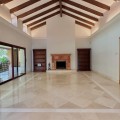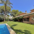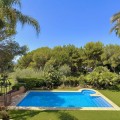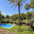 - This villa is located in the prestigious and secure community of Golden Mile Marbella. with 24h security, manicured gardens, paddle courts and children’s play area, within short distance to all aminities of Marbella and the beach. Very private property settled on a flat plot of almost 1500m2 with madure garden and good size swimming pool. The house offers comfotable entrance that leads to the covered garage for 2 cars plas carpor for another two. The villa is distribuited on 3 levels, on the ground floor there are, a spacious living room with the access to the cover large terrace and a garden that also leads to TV room, a guest toilet, a kitchen with utility room and pantry, a goos size master bedroom en suite. The upper floor consists of 4 bedrooms, 3 with their bathrooms, 2 bedrooms are with the access to the terrace. The Basement offers a living room with the cellar, another additional space to that could be addapted to personal tast, a toilet, billard room , a storage room, there is an access to the garden and BBQ area.