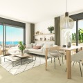 - New Development: Prices from €535,000 to €720,000. [Bedrooms: 2 - 3] [Bathrooms: 2] [Built size: 86m2 - 144m2]. This fantastic new development of stunning contemporary apartments and penthouses with sea views is located just a stone's throw from La Cala de Mijas. The popularity of this beautiful coastal town and the surrounding areas is not surprising. Located on the Costa del Sol this fabulous tourist destination is known for its fabulous sandy beaches, charming old town, and wide range of restaurants, bars, and shops. La Cala de Mijas is also home to several golf courses, one of which is the prestigous Calanova Golf. An ideal spot for outdoor activities like hiking, golf, water sports or simply sitting at a chiringuito on the beachfront enjoying the fantastic climate. Just 25 minutes from Málaga international airport in one direction, and less than 20 minutes from the trendy shops, boutiques and famous night spots of Marbella and Puerto Banus, in the other direction, this amazing development really does boast the perfect location. The development’s stunning panoramic views of the Andalucian countryside and the Mediterranean simply have to be seen. The apartments are designed with modern and sleek interiors and feature high-quality specifications throughout. The development offers resort-standard amenities with two swimming pools, one of which is an infinity pool, fully equipped gymnasium, spa, sauna and even an indoor golf simulator for you to practise your swing. These contemporary apartments and penthouses are spacious and bright with natural sunlight flooding through the floor to ceiling windows. Distributed over several low-rise blocks surrounded by extensive communal gardens they boast high-quality fittings such as Bosch appliances in the kitchens and Hansgrohe taps in the bathrooms. The ground-floor apartments have terraces and private hot tubs, some have their own garden, while the middle-floor apartments have expansive terraces with fabulous views. The penthouses have large terraces leading off the open plan living areas and also have their own hot tubs with the addition of an extensive solarium with absolutely spectacular views. This brand new development truly offers a privileged lifestyle on the Costa del Sol. A part from the fantastic sport and leisure facilities offered, residents of these fantastic contemporary apartments will enjoy the convenience of the Calanova Golf Club being less than three minutes' walk from the front gate. The development also provides parking spaces for golf buggies in the underground parking, making it easy for golfers to reach the course. It's a rare opportunity to step from home to fairway without needing to get in a car. With a fantastic location between Málaga and Marbella just two minutes from one of the top golf courses of the area and a few minutes’ drive to the bustling resort of La Cala de Mijas town, these stunning new Costa del Sol apartments must be on your shortlist. Contact one of our property specialists for more information and to receive the latest availability and price list.