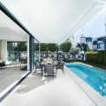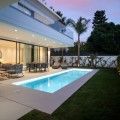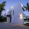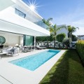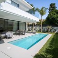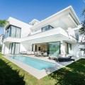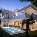 - These marvelous new modern villas for sale are located in one of the most luxurious residential areas in Marbella – Golden Mile, in a secure urbanization Rio Verde, just 100 meters from the beach. The villas combine excellent quality, amazing location and the best price. Each house is spacious, full of light and equipped with everything necessary for a comfortable life. It consists of 4 bedrooms and 5 bathrooms, as well as large terraces on each floor, both covered and uncovered, perfect for barbecue, gatherings with friends or just sunbathing to your heart’s content. A private swimming pool will bring joy to your whole family throughout long Spanish summer. These villas in the Golden Mile are located close to the beach, three minute walk away from Puerto Banus and within a walking distance from the supermarkets. The villas offer beautiful sea views and are the perfect choice both as a holiday residence and as a family home.